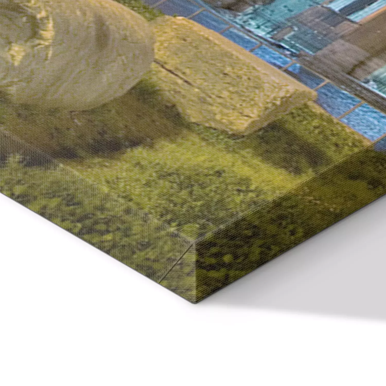 De print wordt aangebracht op hoogwaardig canvas dat op een schildersweefgetouw (spieraam) wordt gespannen. Omdat de print de zijranden bedekt, hoeft het ontwerp niet met een extra kader te worden omlijst. Wij raden ook composities aan die uit meerdere foto's bestaan en zo een coherente compositie vormen.