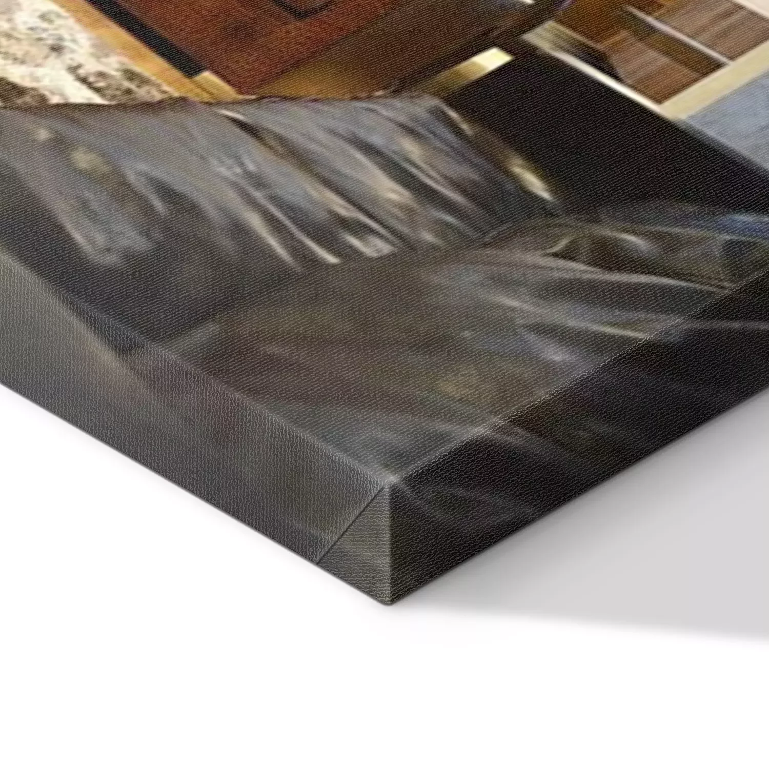 De print wordt aangebracht op hoogwaardig canvas dat op een schildersweefgetouw (spieraam) wordt gespannen. Omdat de print de zijranden bedekt, hoeft het ontwerp niet met een extra kader te worden omlijst. Wij raden ook composities aan die uit meerdere foto's bestaan en zo een coherente compositie vormen.