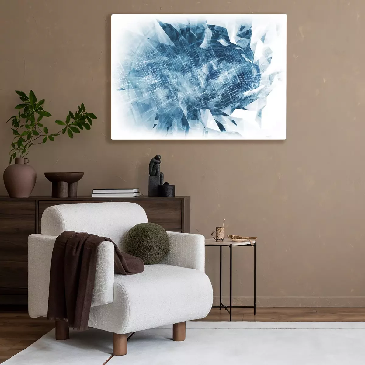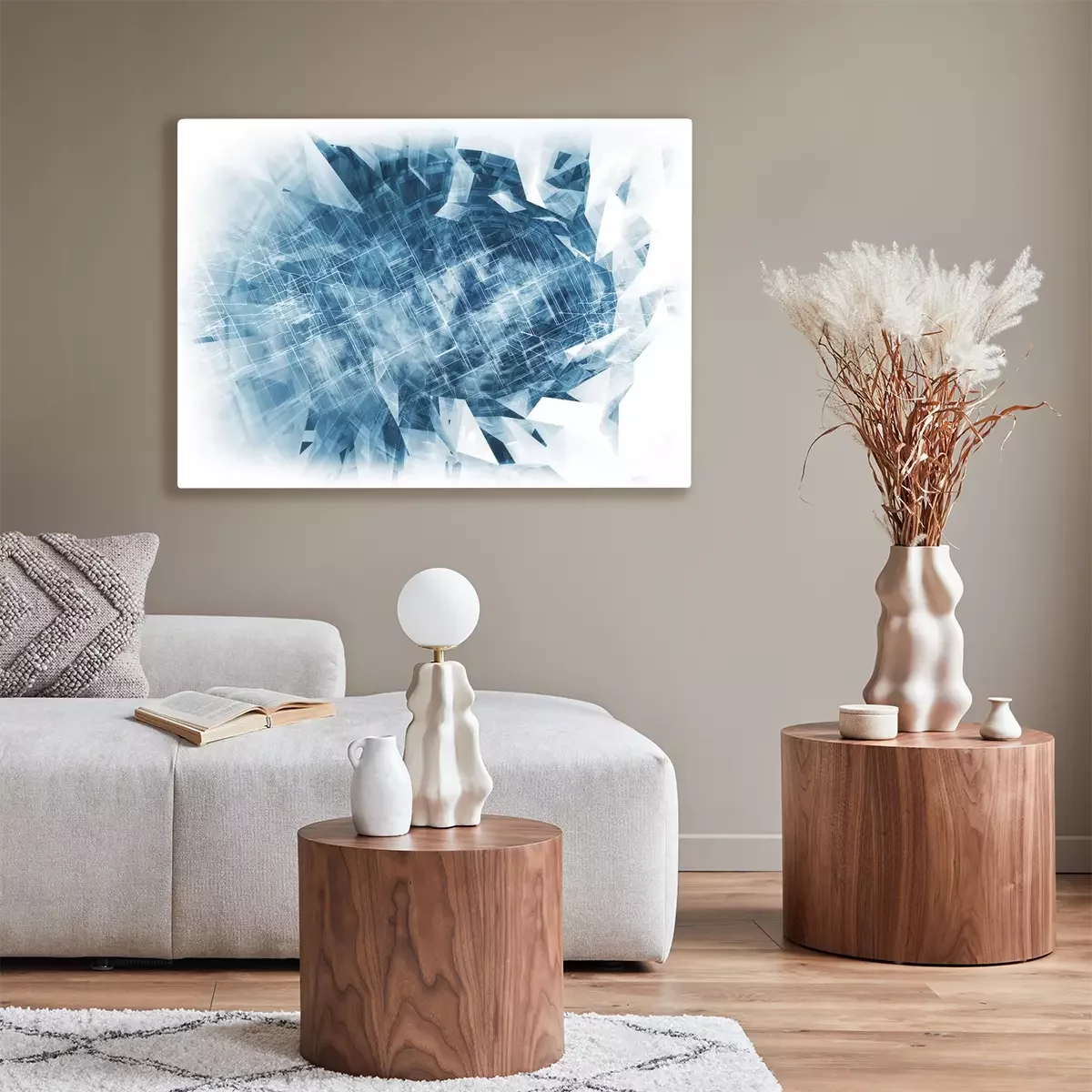 De print wordt aangebracht op hoogwaardig canvas dat op een schildersweefgetouw (spieraam) wordt gespannen. Omdat de print de zijranden bedekt, hoeft het ontwerp niet met een extra kader te worden omlijst. Wij raden ook composities aan die uit meerdere foto's bestaan en zo een coherente compositie vormen.