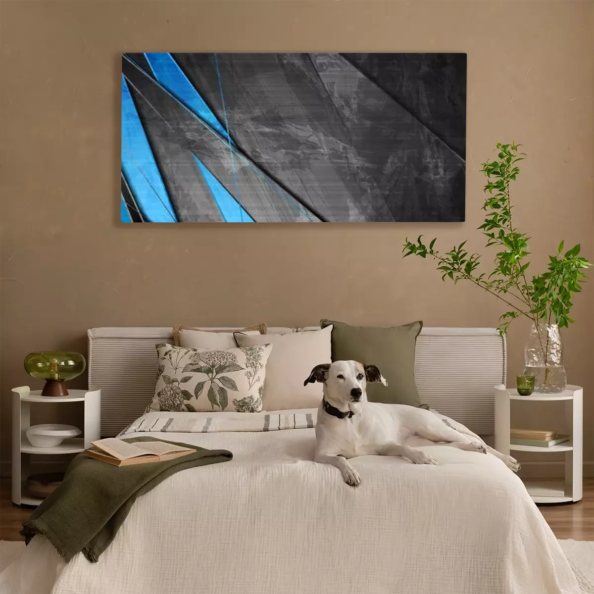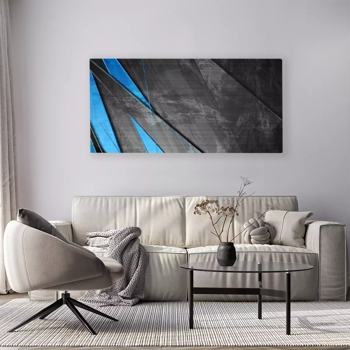 Canvas: Contrast blue and grey stripes. Abstract grunge tech banner design. Old wall concrete texture background. Vector illustration