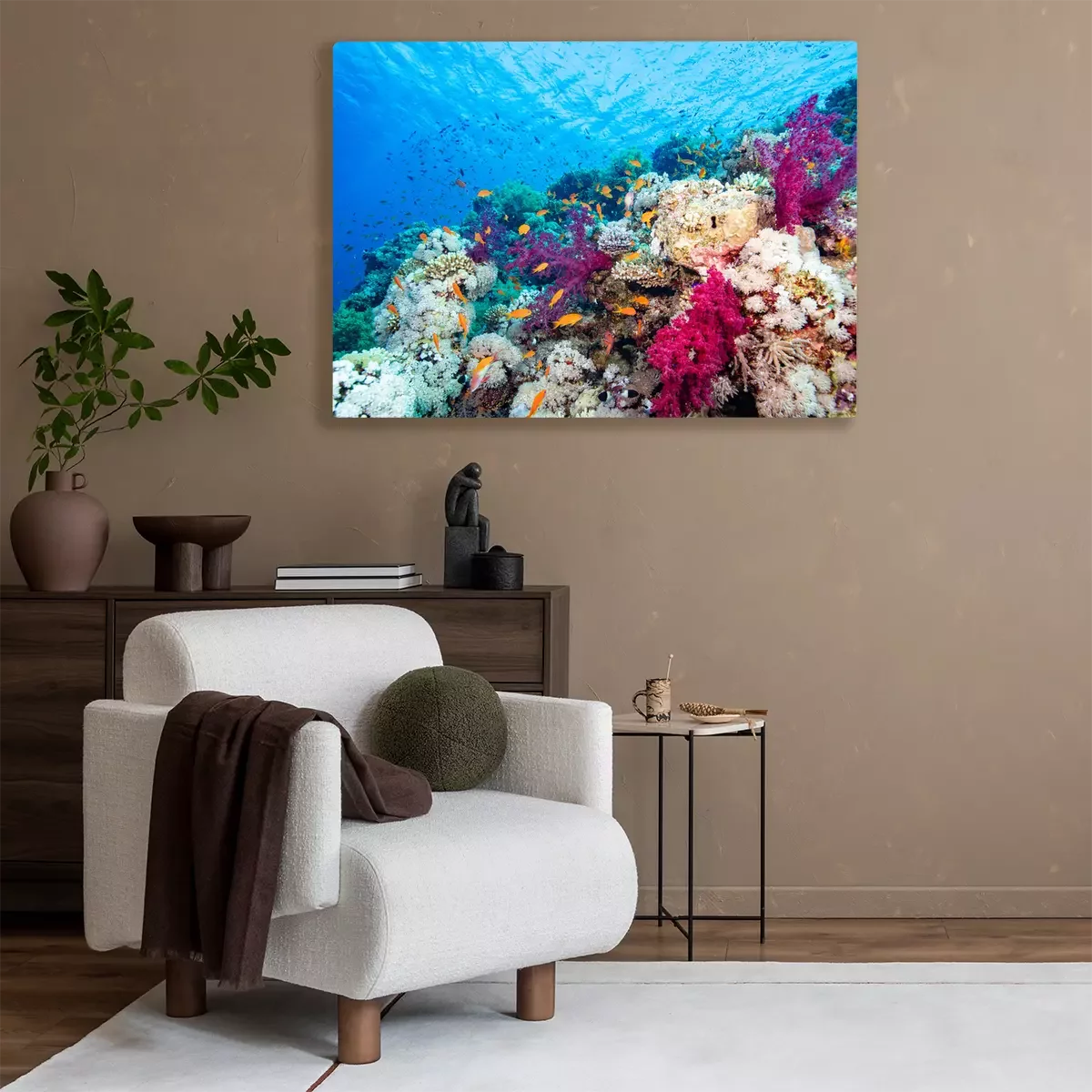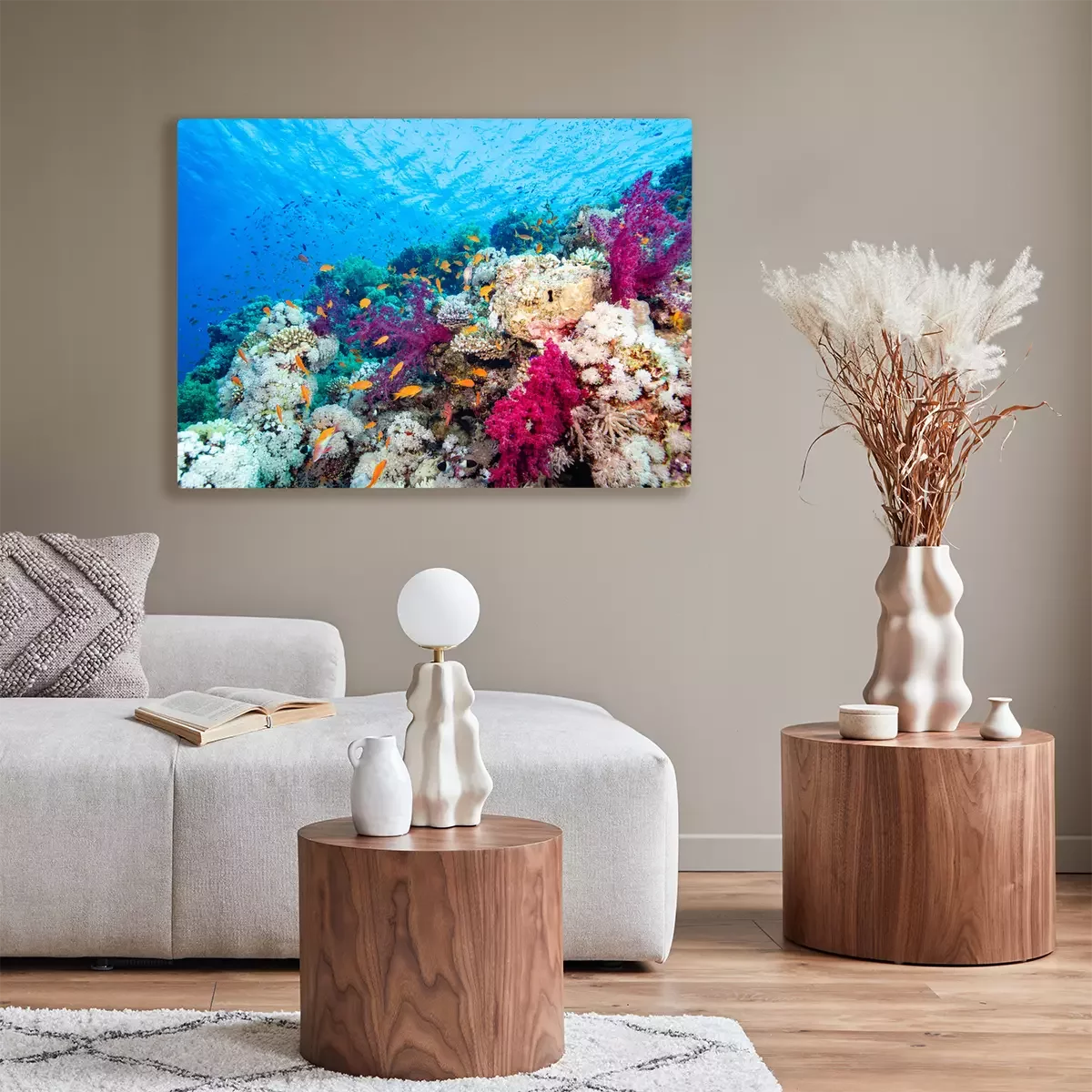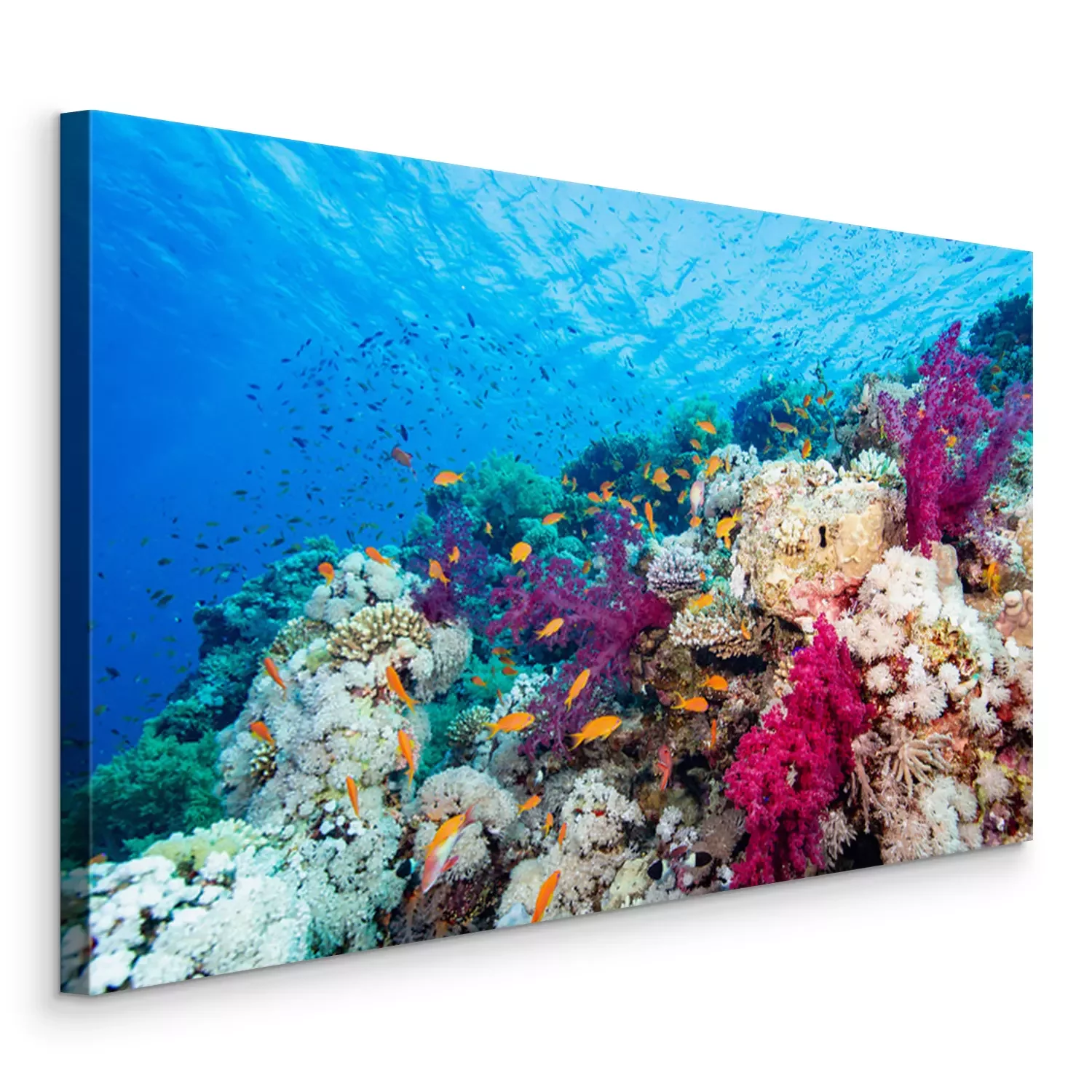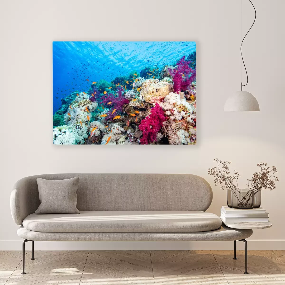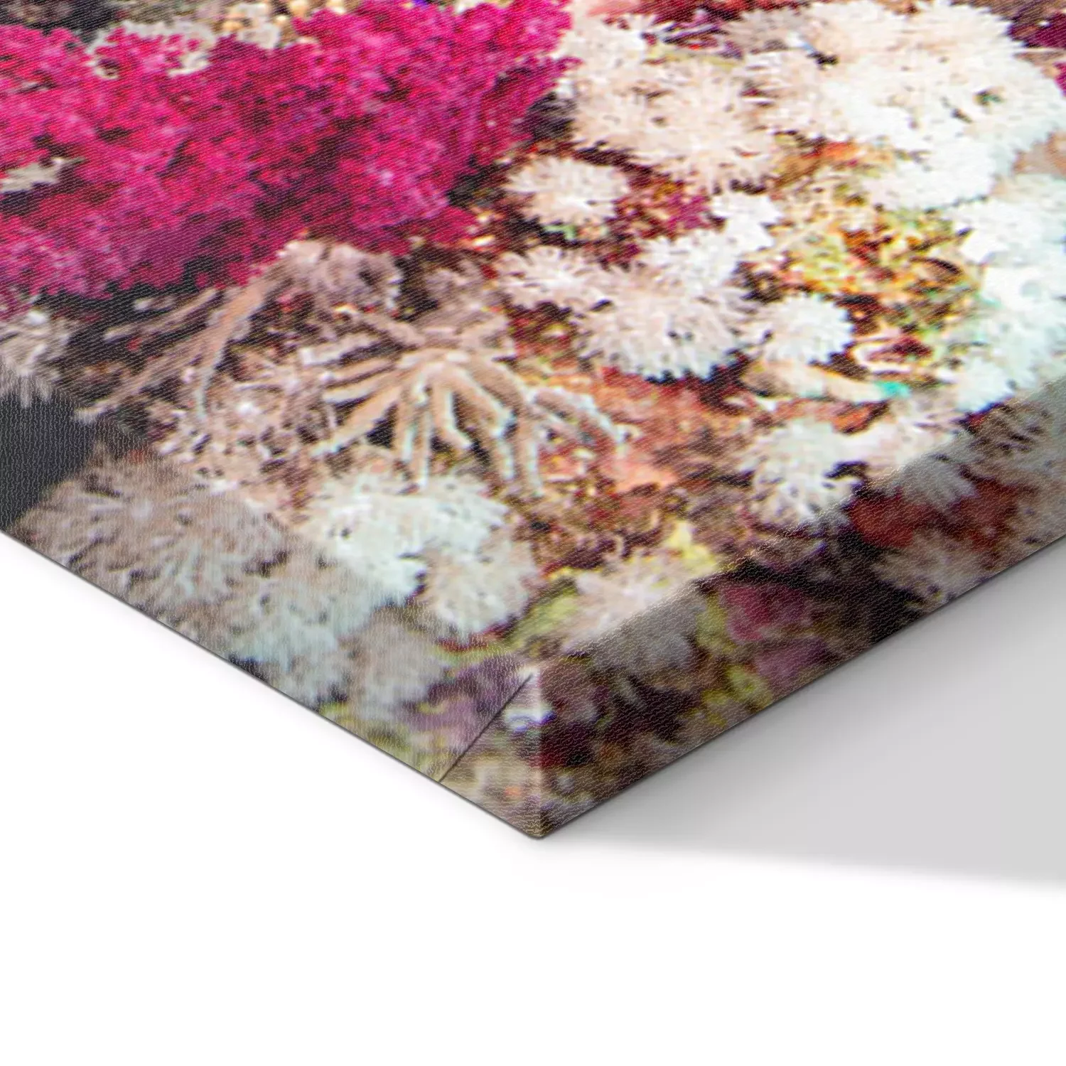 De print wordt aangebracht op hoogwaardig canvas dat op een schildersweefgetouw (spieraam) wordt gespannen. Omdat de print de zijranden bedekt, hoeft het ontwerp niet met een extra kader te worden omlijst. Wij raden ook composities aan die uit meerdere foto's bestaan en zo een coherente compositie vormen.