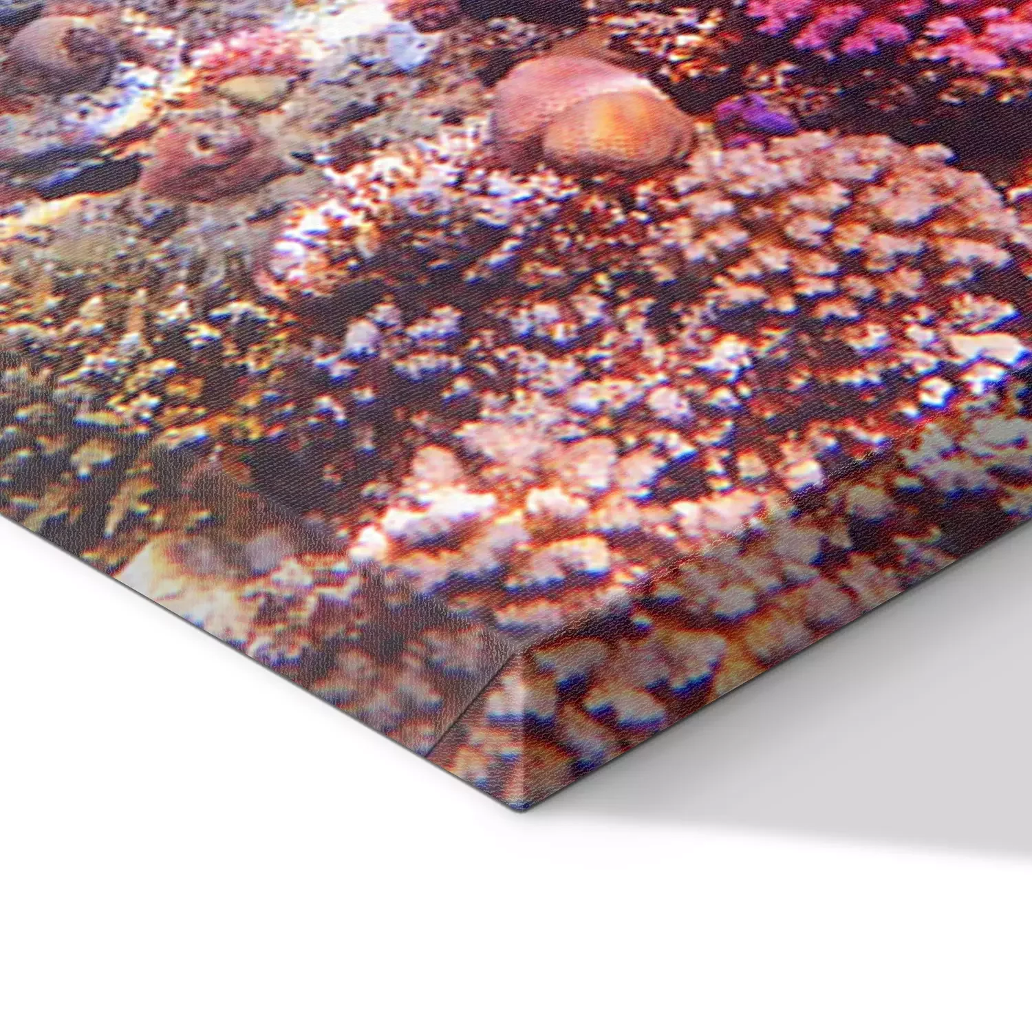 De print wordt aangebracht op hoogwaardig canvas dat op een schildersweefgetouw (spieraam) wordt gespannen. Omdat de print de zijranden bedekt, hoeft het ontwerp niet met een extra kader te worden omlijst. Wij raden ook composities aan die uit meerdere foto's bestaan en zo een coherente compositie vormen.