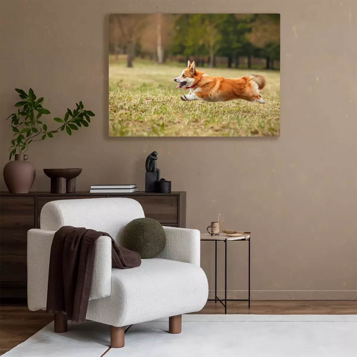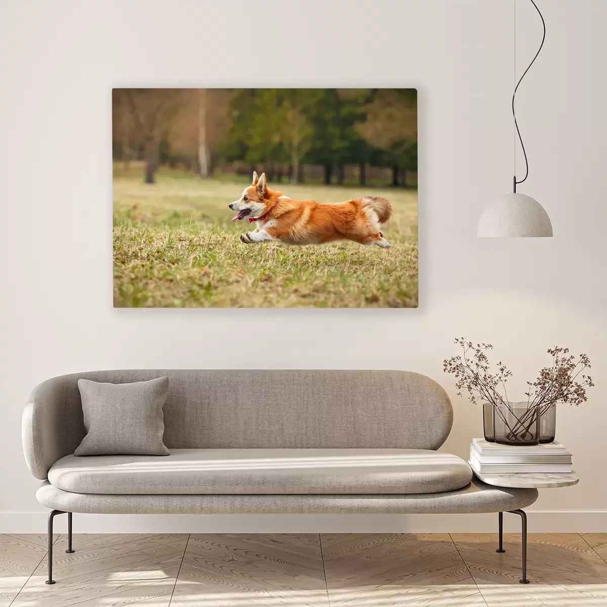 Canvas: Corgi die in het park rennen