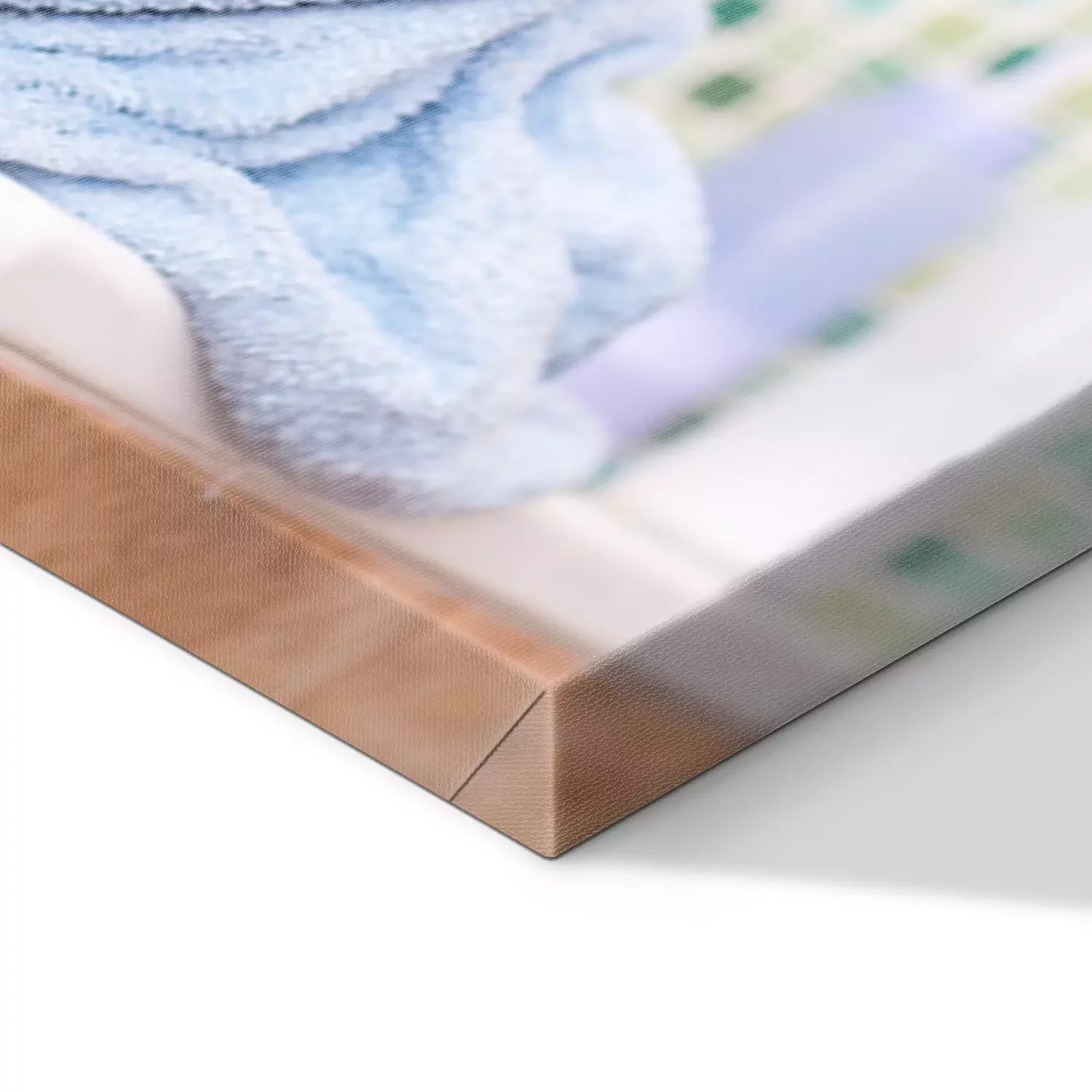 De print wordt aangebracht op hoogwaardig canvas dat op een schildersweefgetouw (spieraam) wordt gespannen. Omdat de print de zijranden bedekt, hoeft het ontwerp niet met een extra kader te worden omlijst. Wij raden ook composities aan die uit meerdere foto's bestaan en zo een coherente compositie vormen.