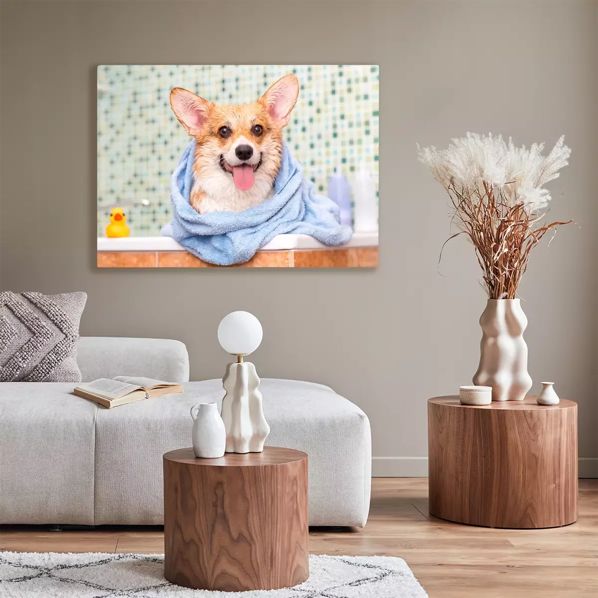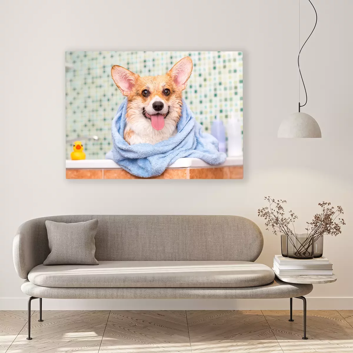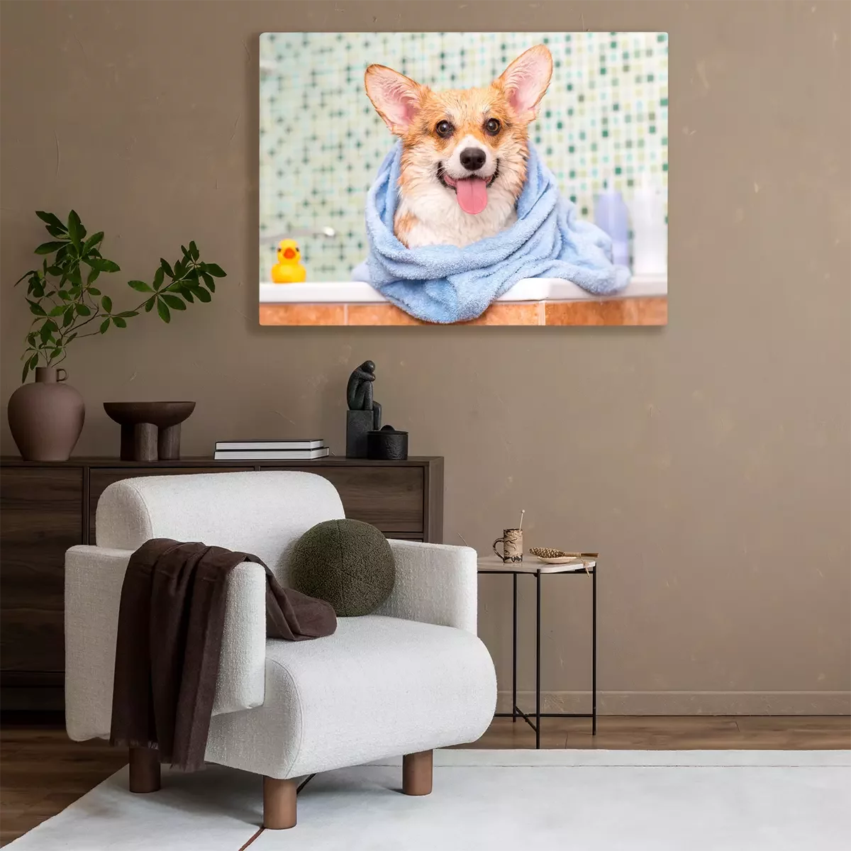 Canvas Corgi na bad