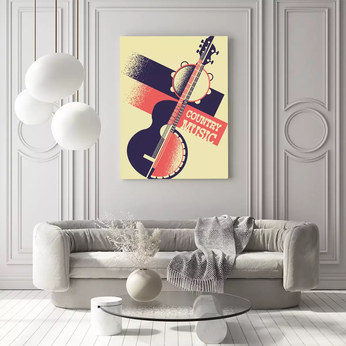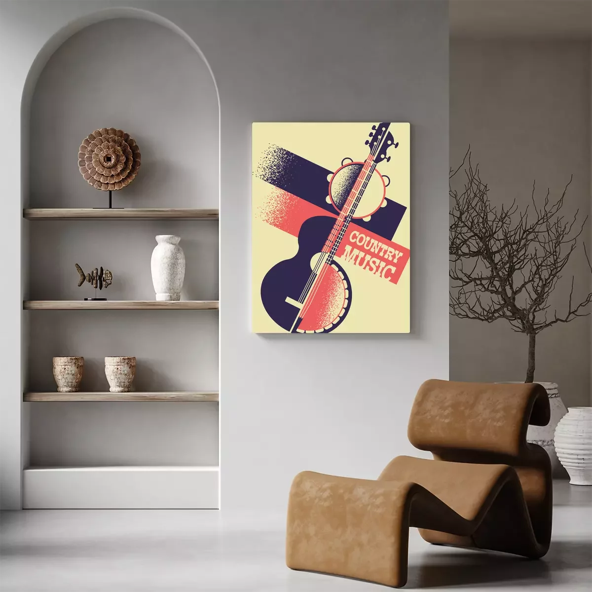 Canvas: Country muziek achtergrond met muziekinstrumenten en decoratie tekst. Vector retro poster