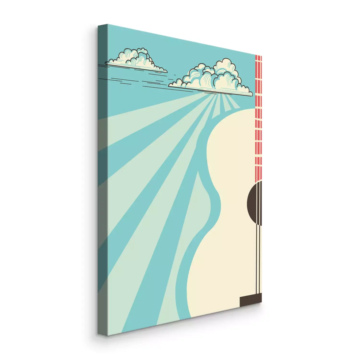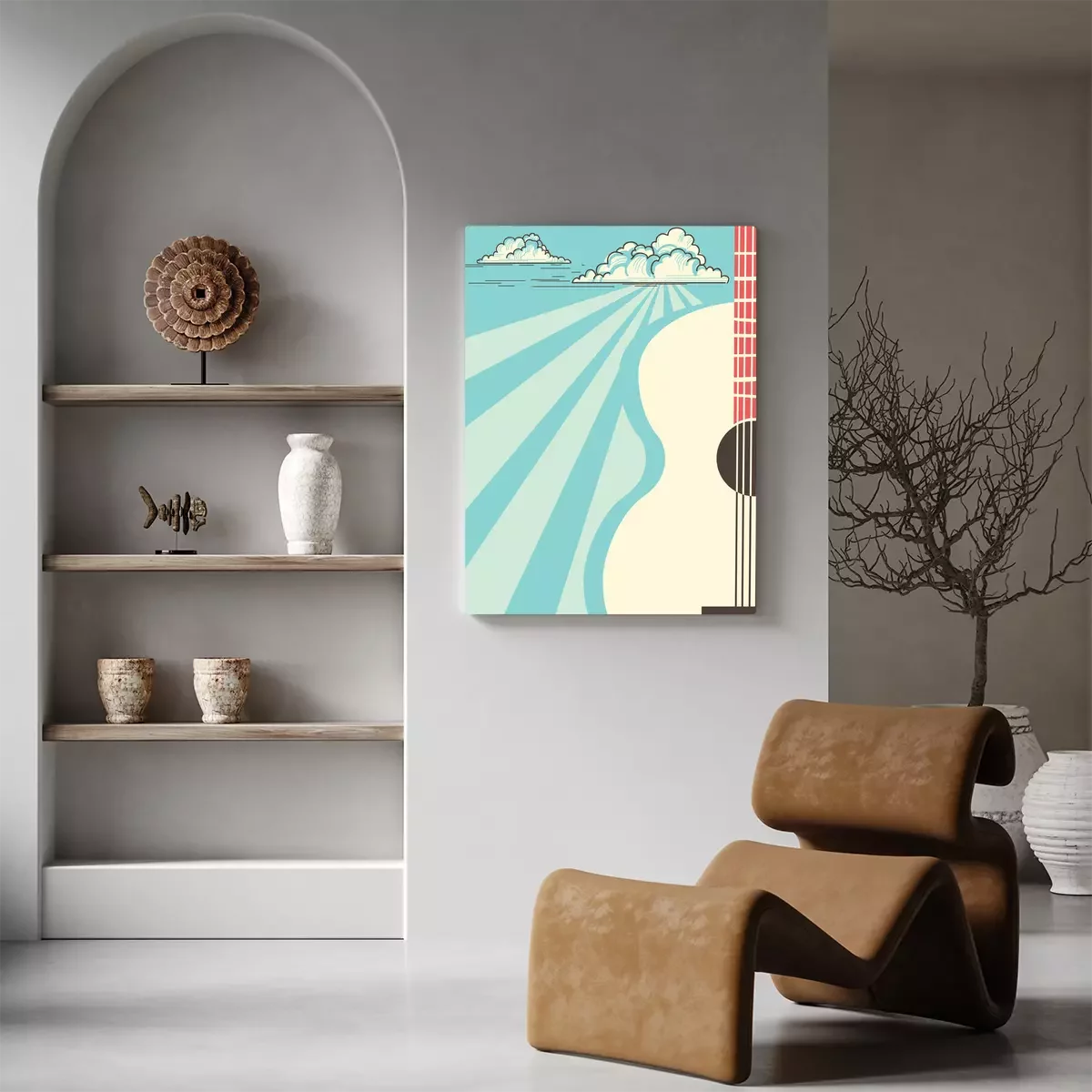 Canvas Country muziekaffiche met muzikale instrumenten akoestische gitaar. Vector blauwe hemelachtergrond