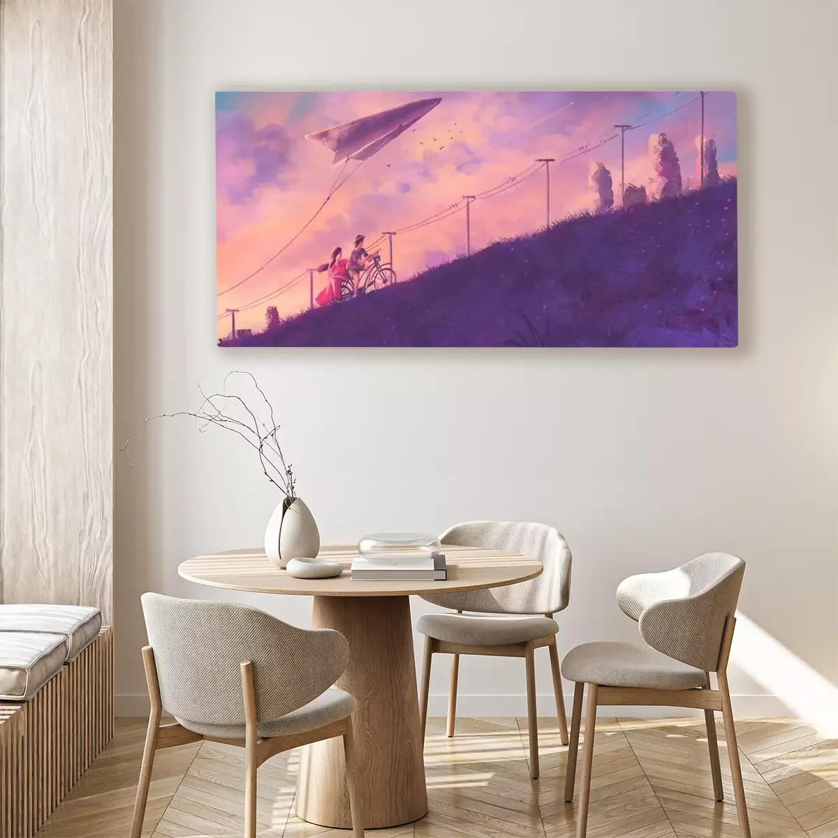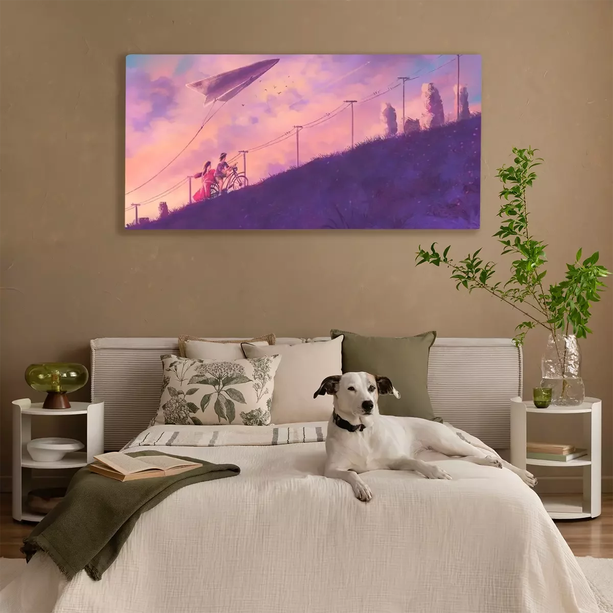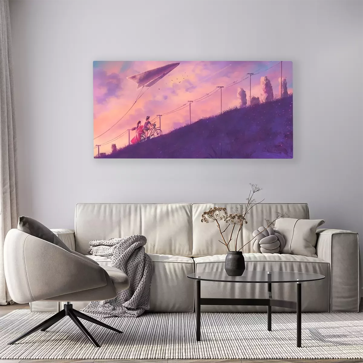 De print wordt aangebracht op hoogwaardig canvas dat op een schildersweefgetouw (spieraam) wordt gespannen. Omdat de print de zijranden bedekt, hoeft het ontwerp niet met een extra kader te worden omlijst. Wij raden ook composities aan die uit meerdere foto's bestaan en zo een coherente compositie vormen.