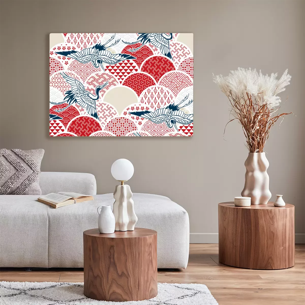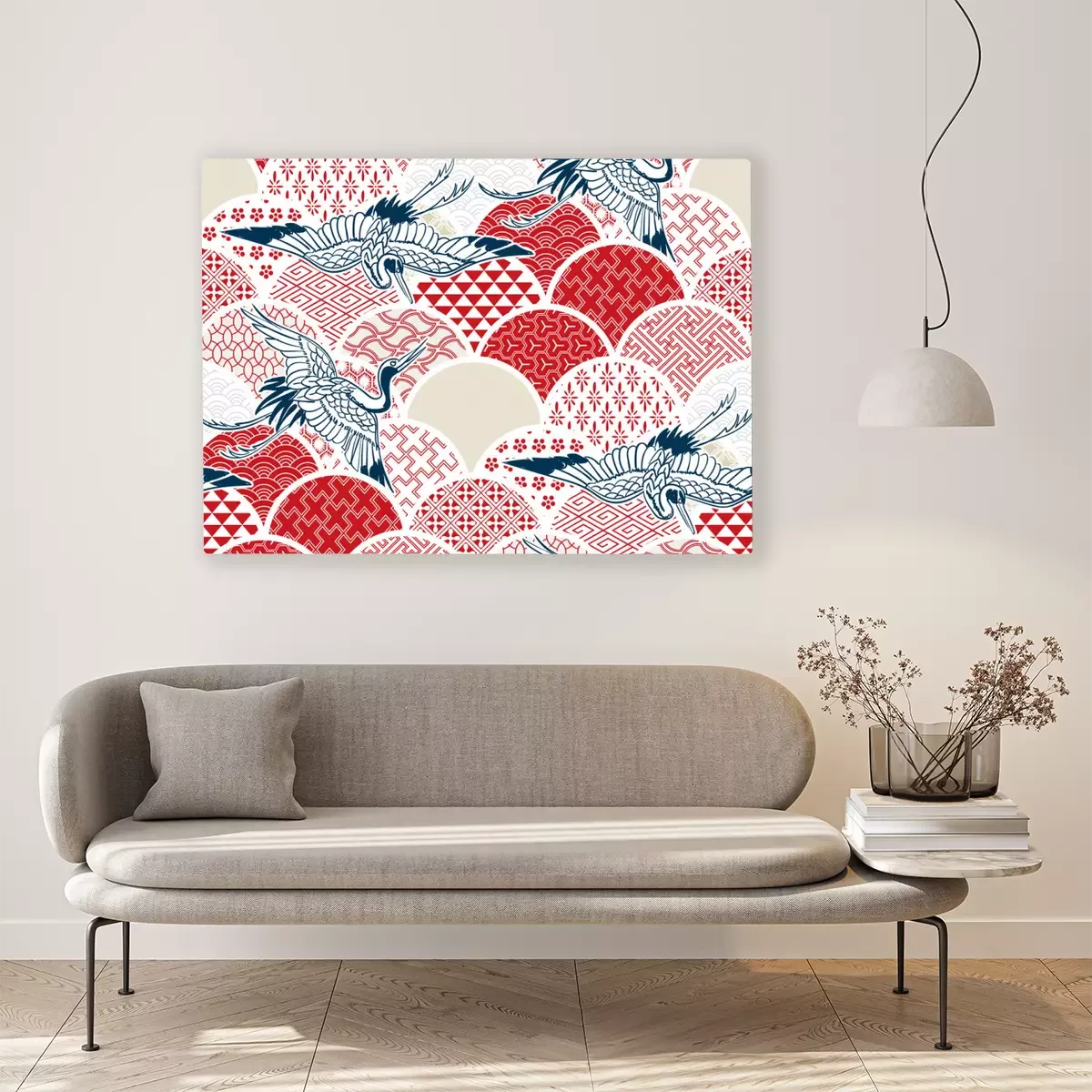 Canvas: crane bird traditional kimono pattern vector sketch illustration line art japanese chinese oriental design