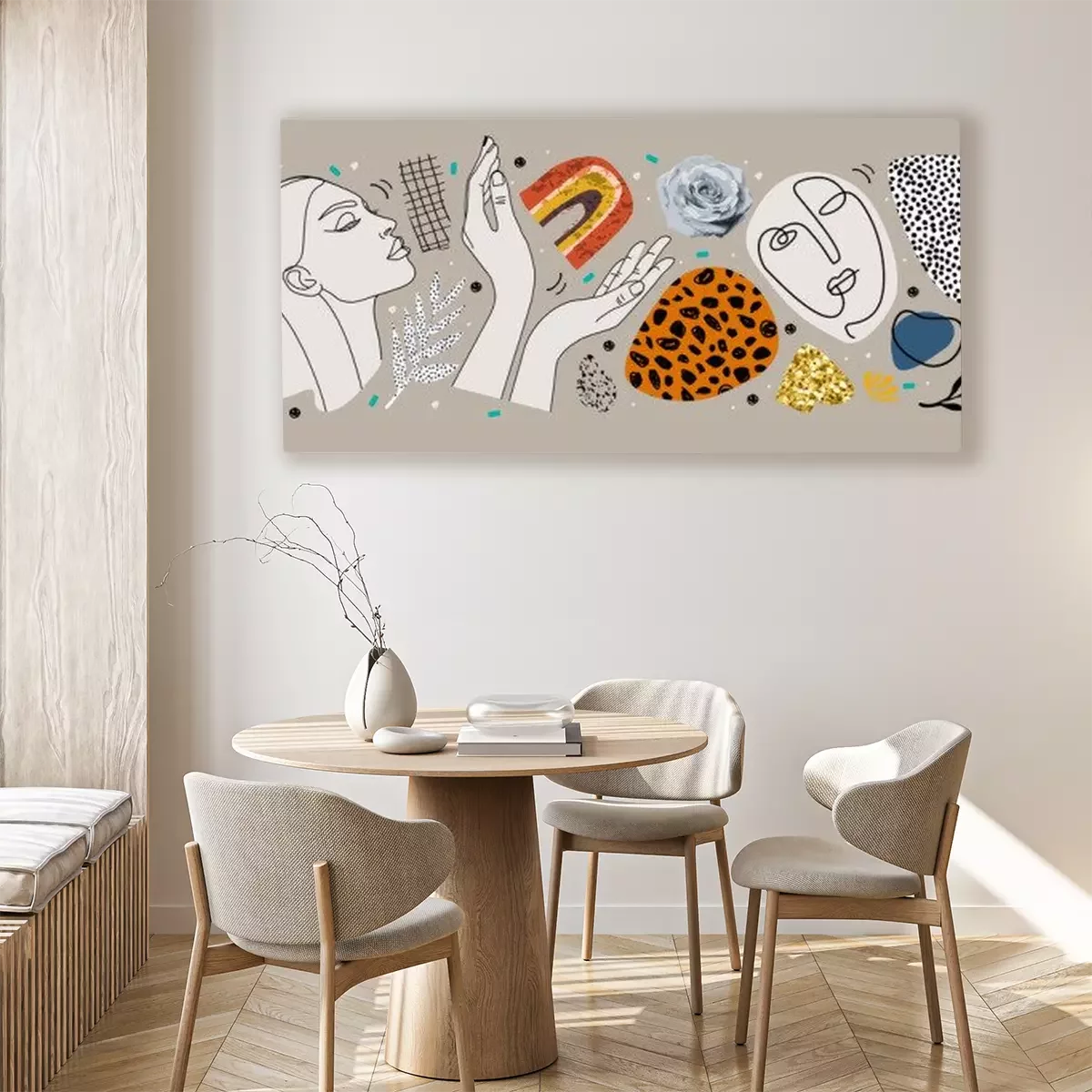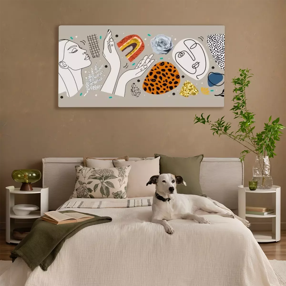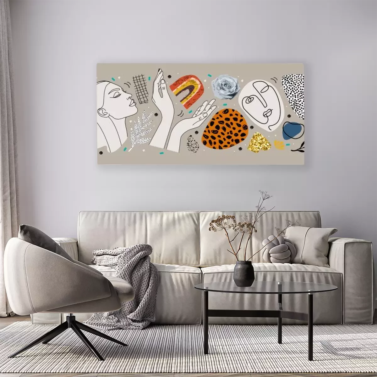 De print wordt aangebracht op hoogwaardig canvas dat op een schildersweefgetouw (spieraam) wordt gespannen. Omdat de print de zijranden bedekt, hoeft het ontwerp niet met een extra kader te worden omlijst. Wij raden ook composities aan die uit meerdere foto's bestaan en zo een coherente compositie vormen.