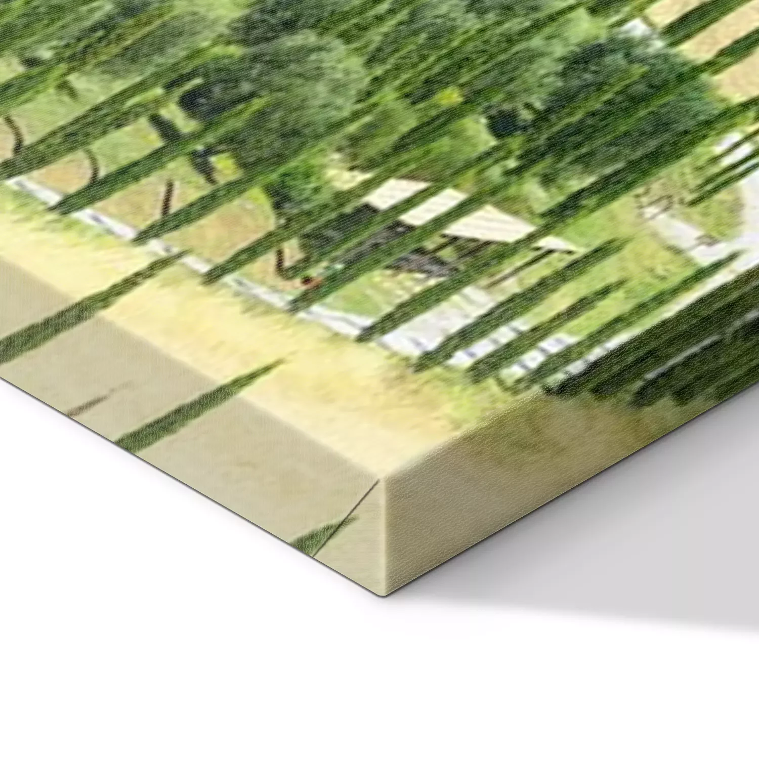 De print wordt aangebracht op hoogwaardig canvas dat op een schildersweefgetouw (spieraam) wordt gespannen. Omdat de print de zijranden bedekt, hoeft het ontwerp niet met een extra kader te worden omlijst. Wij raden ook composities aan die uit meerdere foto's bestaan en zo een coherente compositie vormen.