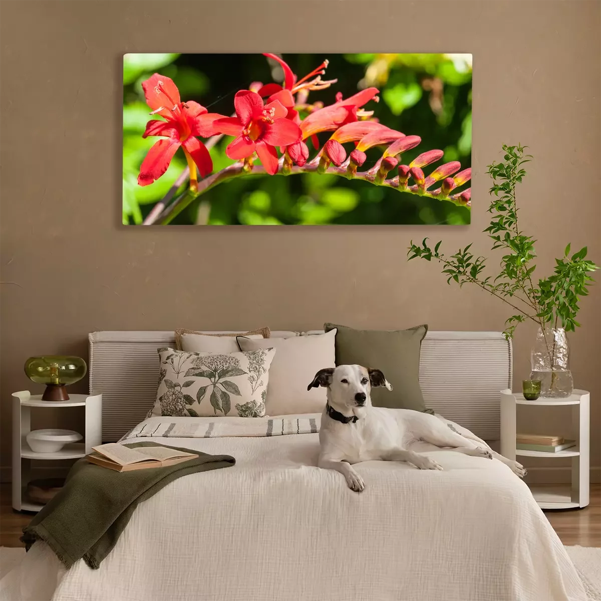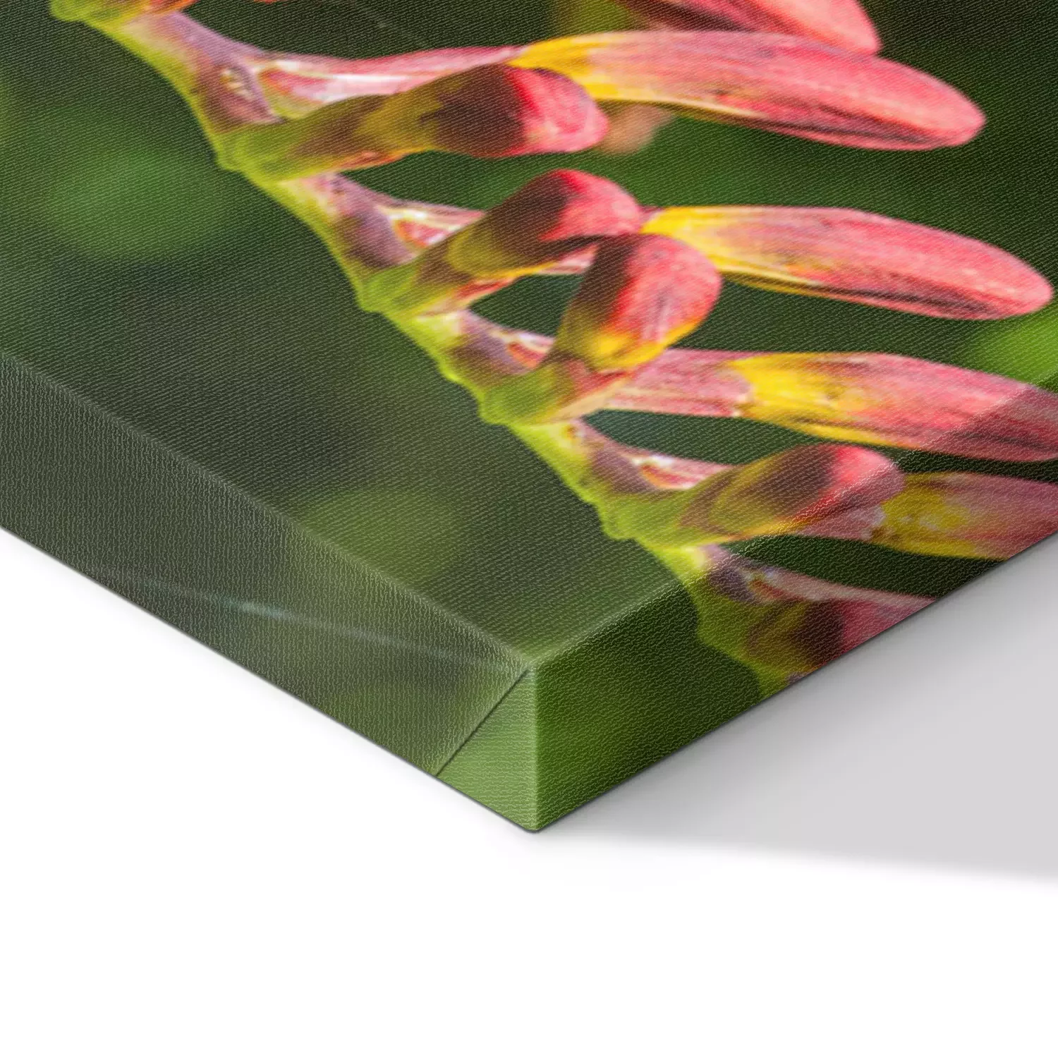 De print wordt aangebracht op hoogwaardig canvas dat op een schildersweefgetouw (spieraam) wordt gespannen. Omdat de print de zijranden bedekt, hoeft het ontwerp niet met een extra kader te worden omlijst. Wij raden ook composities aan die uit meerdere foto's bestaan en zo een coherente compositie vormen.