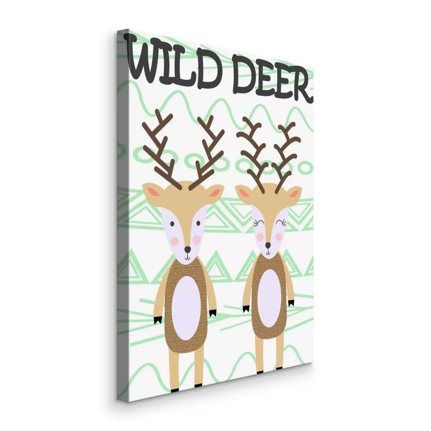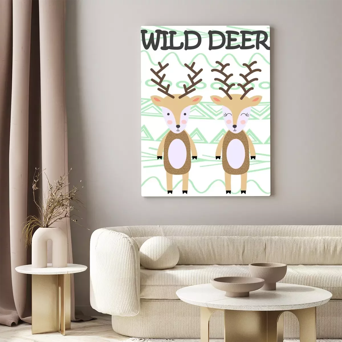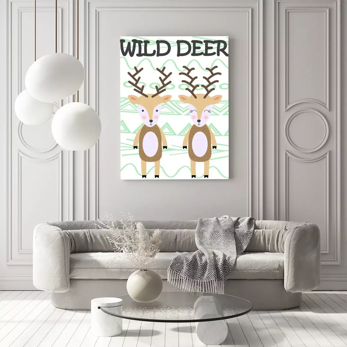 Canvas: Cute cartoon deer. Composition with folk art animals and floral decor elements. Hand drawn clip art. Scandinavian style