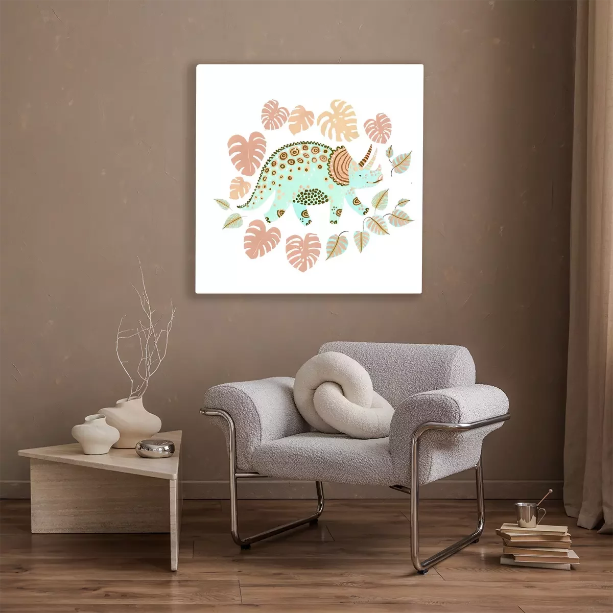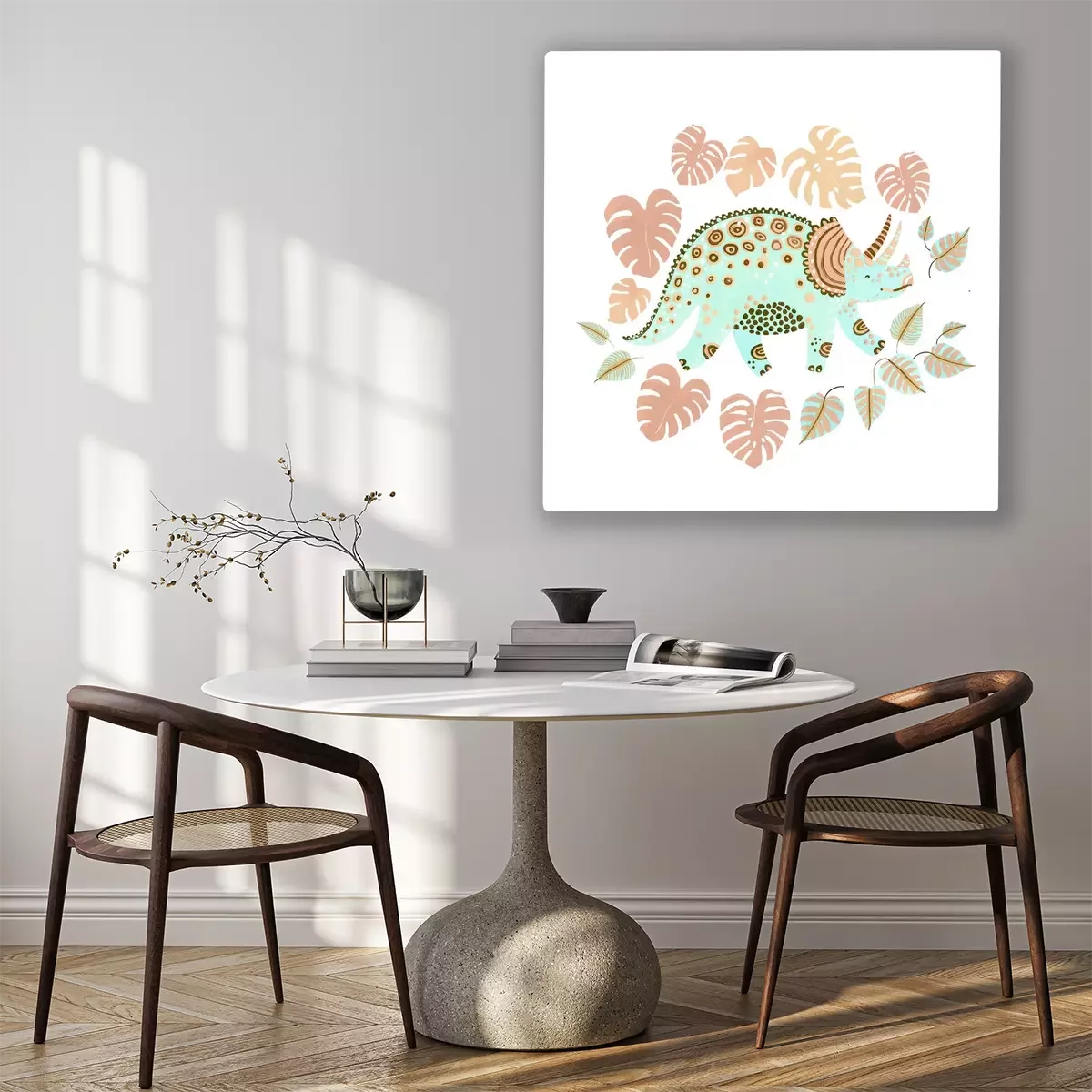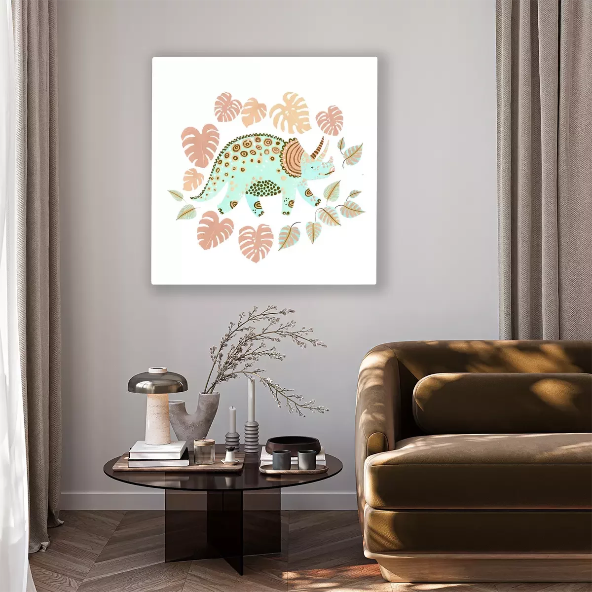 Canvas: Cute cartoon dinosaur poster in scandinavian style