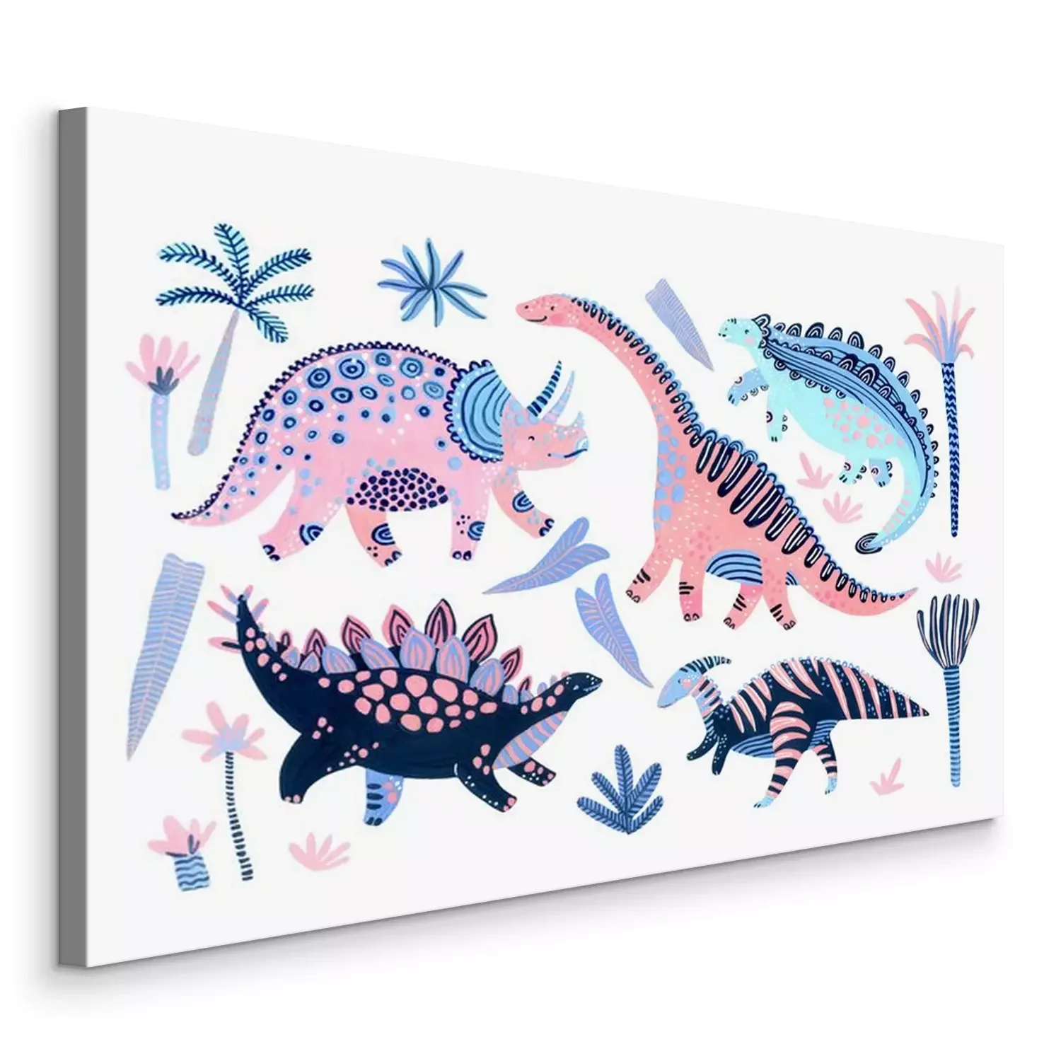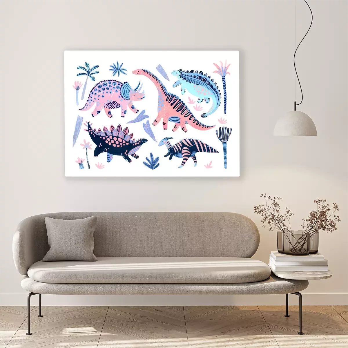 Canvas: Cute cartoon dinosaurs poster in scandinavian style