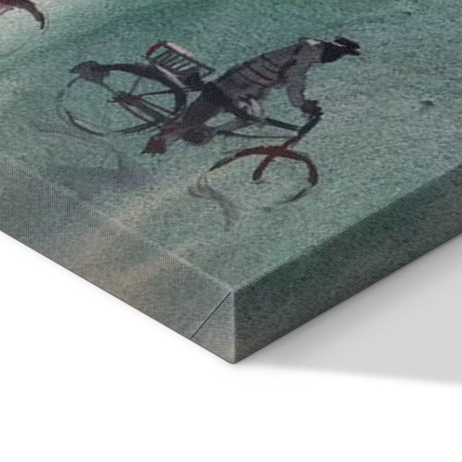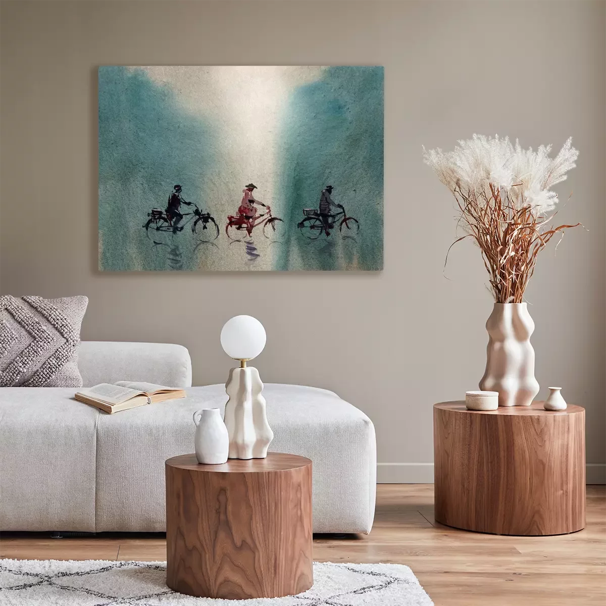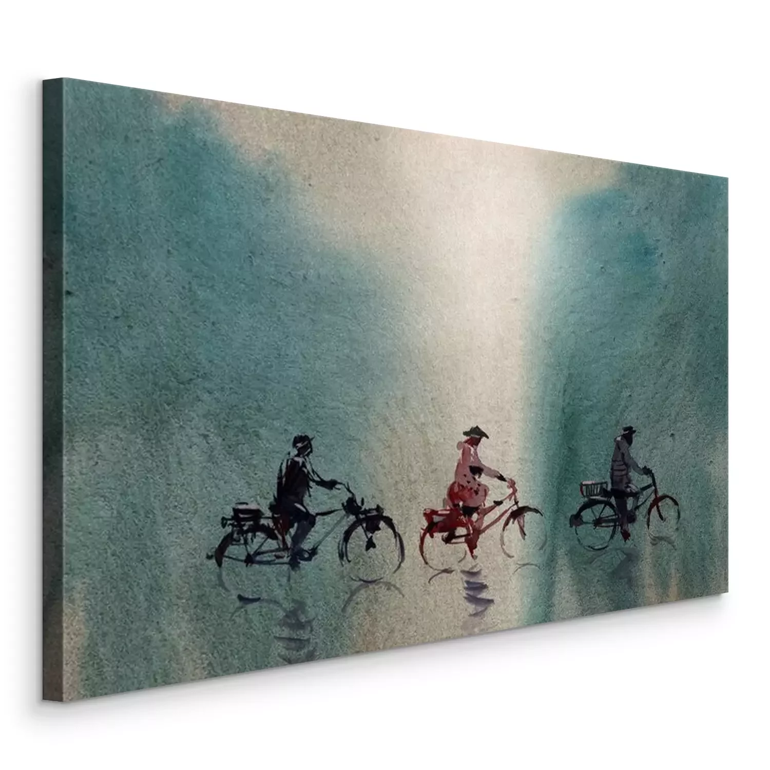 Canvas Cyclist riding bicycle crossing woods watercolor abstract painting