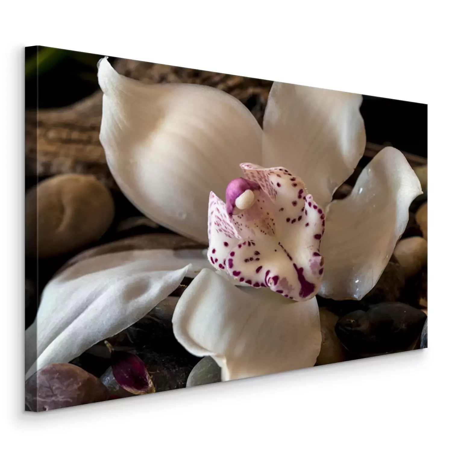 De print wordt aangebracht op hoogwaardig canvas dat op een schildersweefgetouw (spieraam) wordt gespannen. Omdat de print de zijranden bedekt, hoeft het ontwerp niet met een extra kader te worden omlijst. Wij raden ook composities aan die uit meerdere foto's bestaan en zo een coherente compositie vormen.