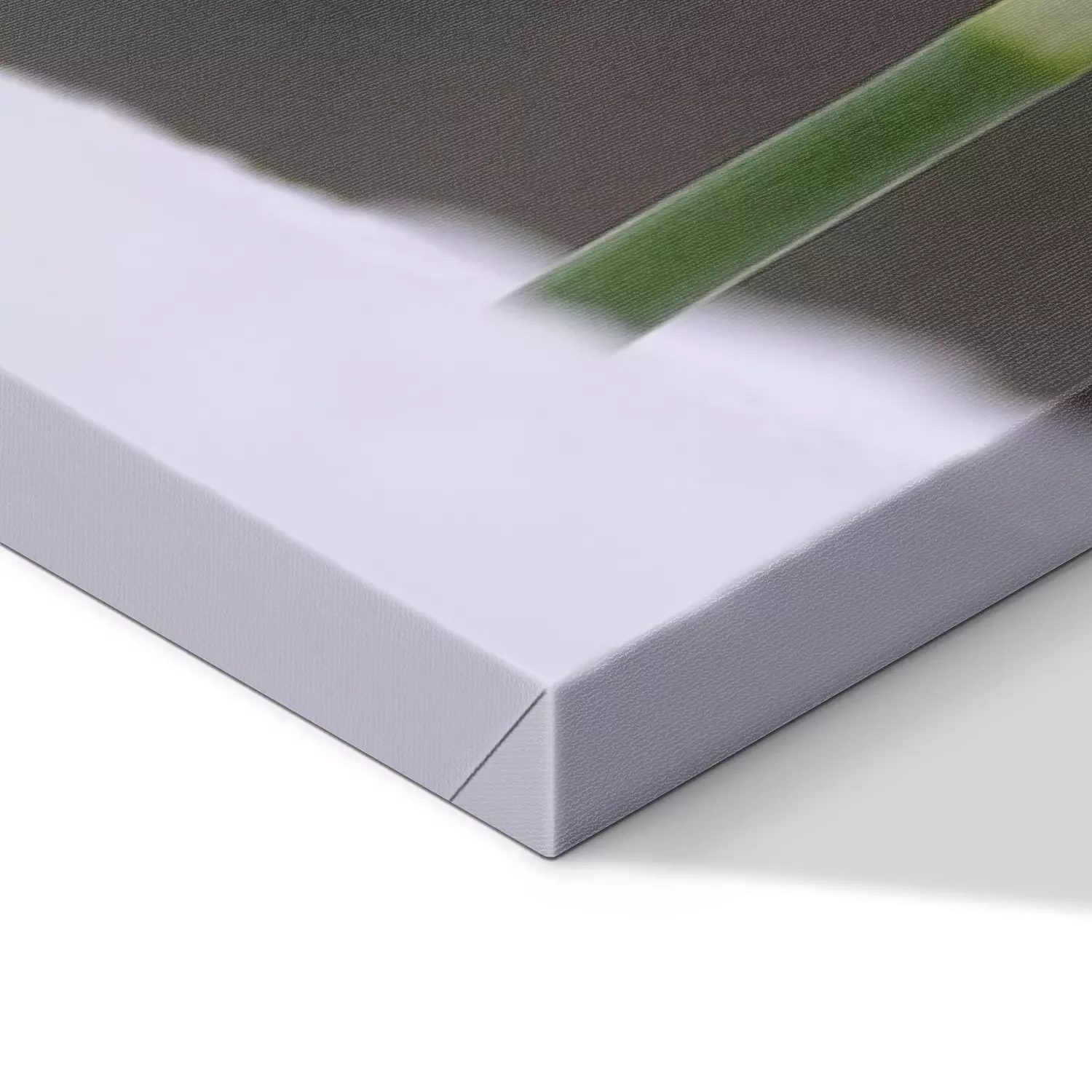 De print wordt aangebracht op hoogwaardig canvas dat op een schildersweefgetouw (spieraam) wordt gespannen. Omdat de print de zijranden bedekt, hoeft het ontwerp niet met een extra kader te worden omlijst. Wij raden ook composities aan die uit meerdere foto's bestaan en zo een coherente compositie vormen.