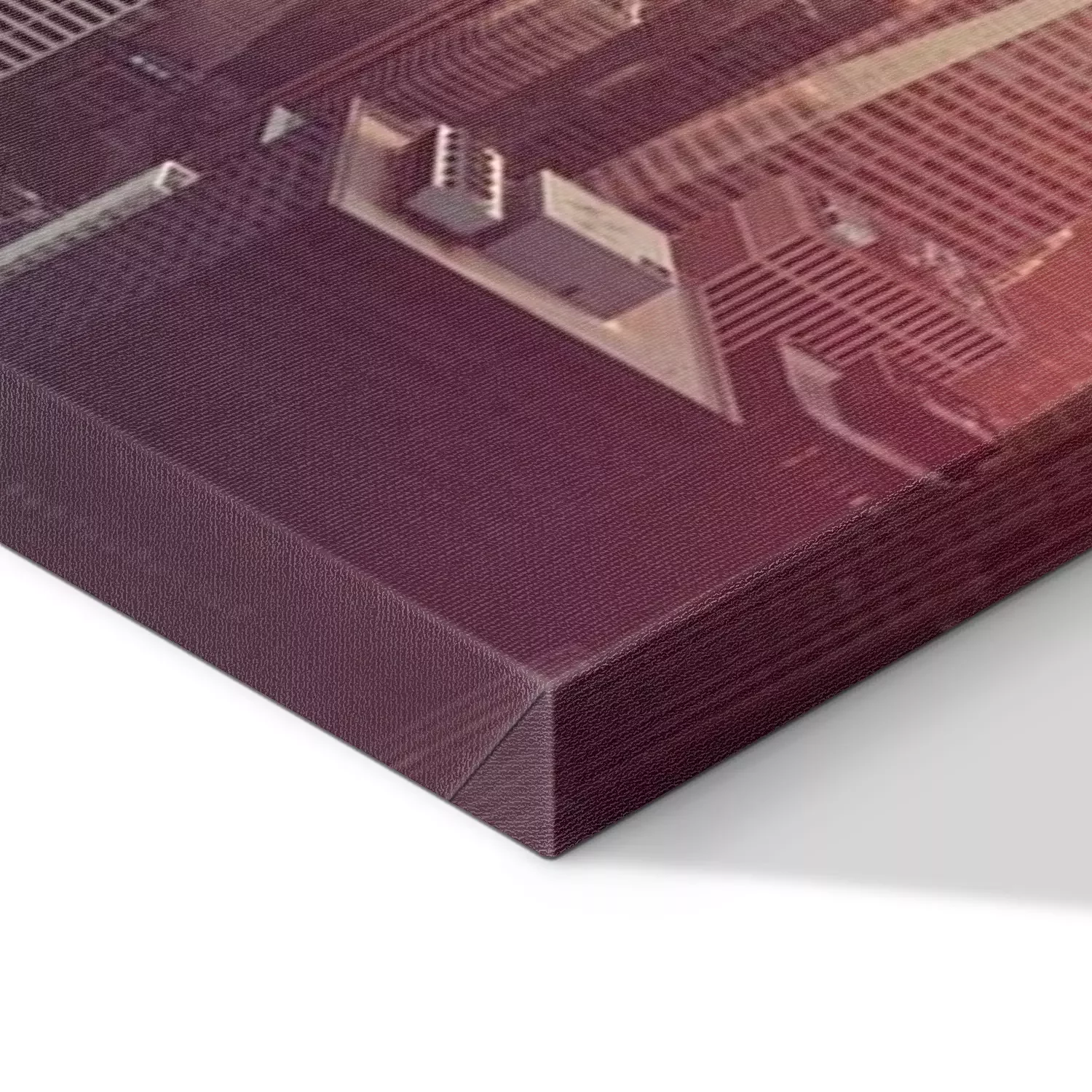De print wordt aangebracht op hoogwaardig canvas dat op een schildersweefgetouw (spieraam) wordt gespannen. Omdat de print de zijranden bedekt, hoeft het ontwerp niet met een extra kader te worden omlijst. Wij raden ook composities aan die uit meerdere foto's bestaan en zo een coherente compositie vormen.