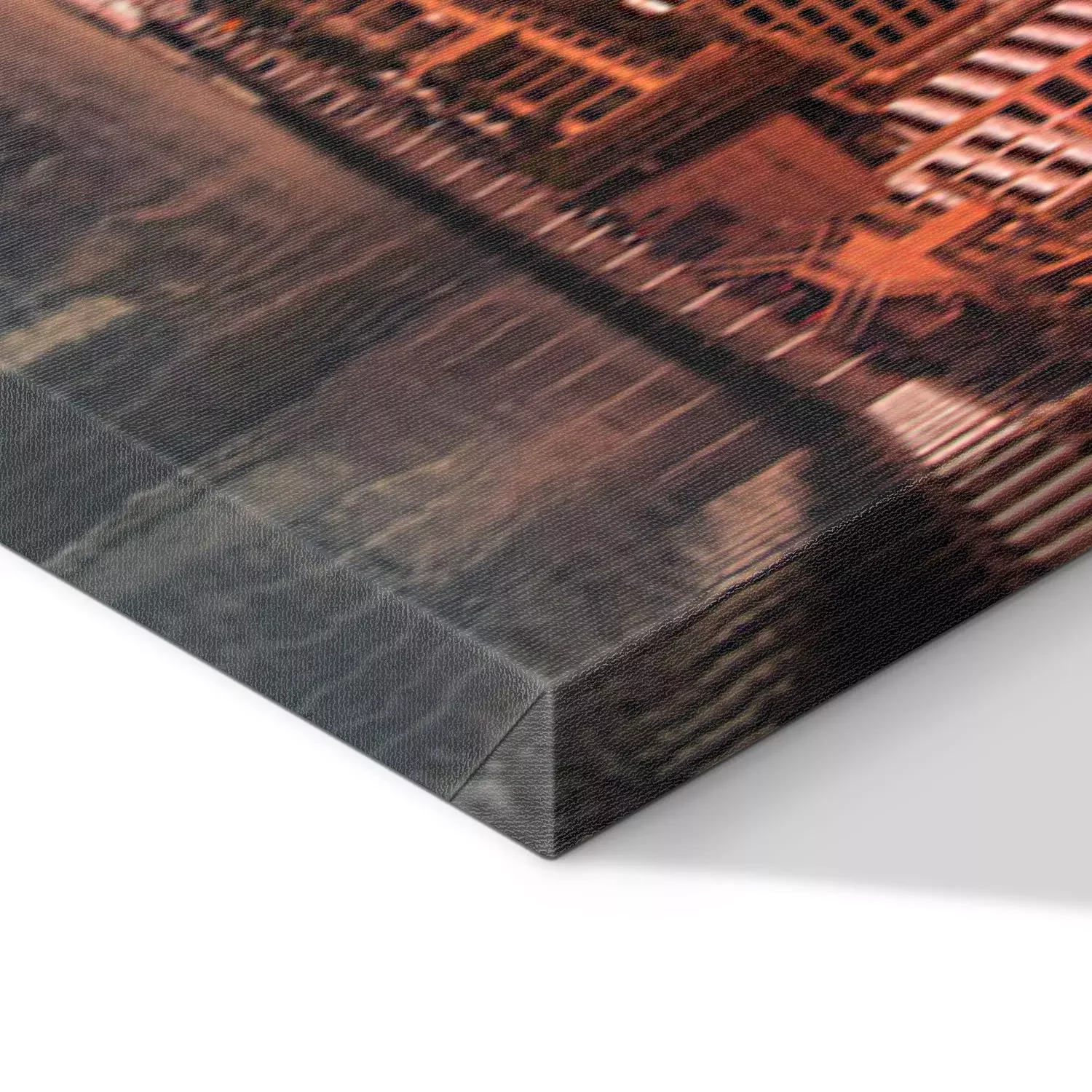 De print wordt aangebracht op hoogwaardig canvas dat op een schildersweefgetouw (spieraam) wordt gespannen. Omdat de print de zijranden bedekt, hoeft het ontwerp niet met een extra kader te worden omlijst. Wij raden ook composities aan die uit meerdere foto's bestaan en zo een coherente compositie vormen.