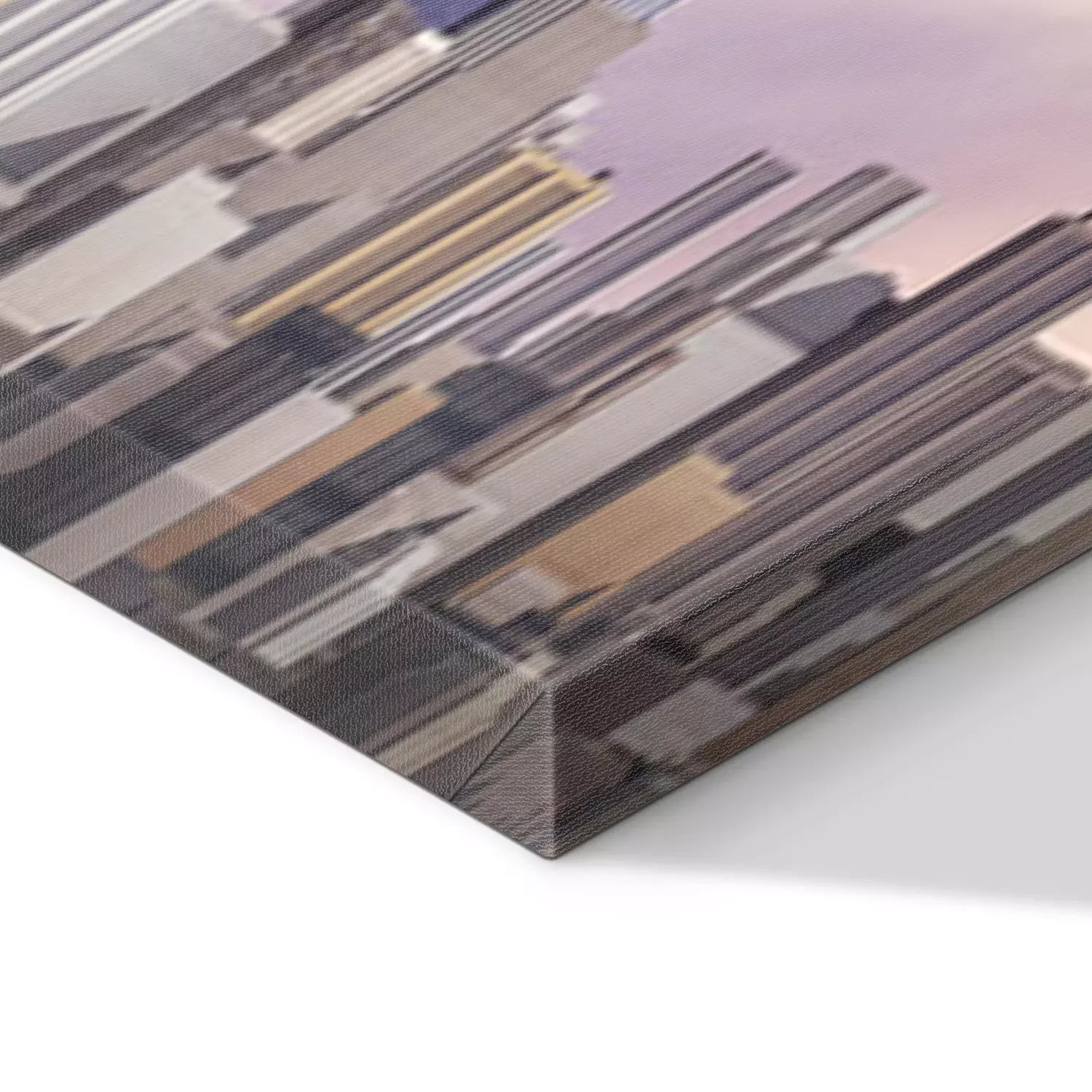 De print wordt aangebracht op hoogwaardig canvas dat op een schildersweefgetouw (spieraam) wordt gespannen. Omdat de print de zijranden bedekt, hoeft het ontwerp niet met een extra kader te worden omlijst. Wij raden ook composities aan die uit meerdere foto's bestaan en zo een coherente compositie vormen.