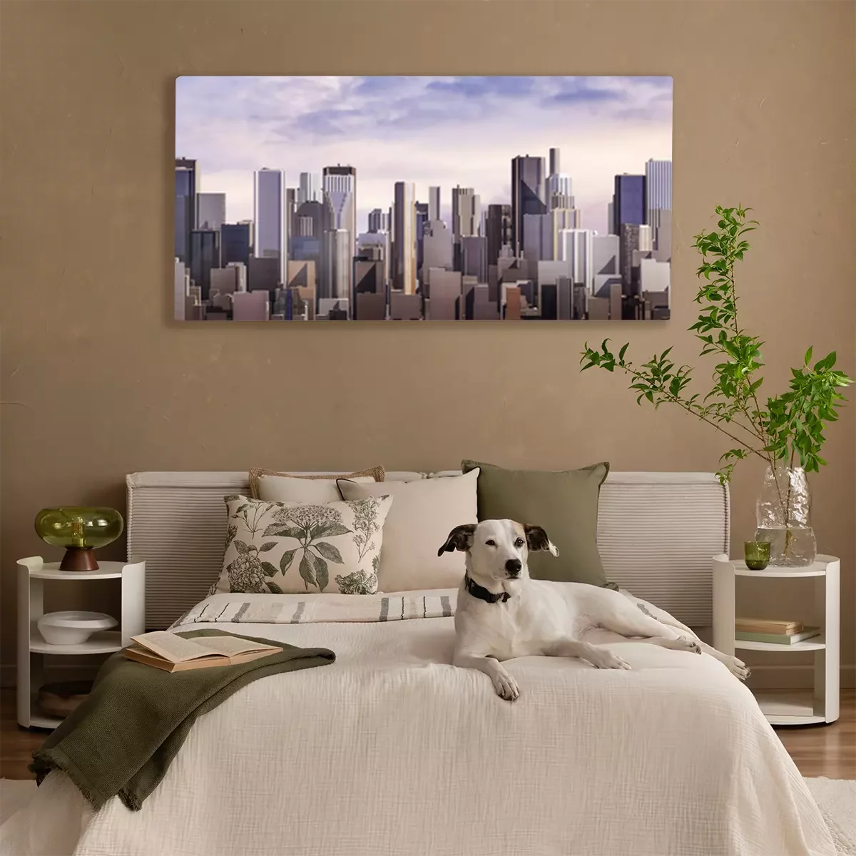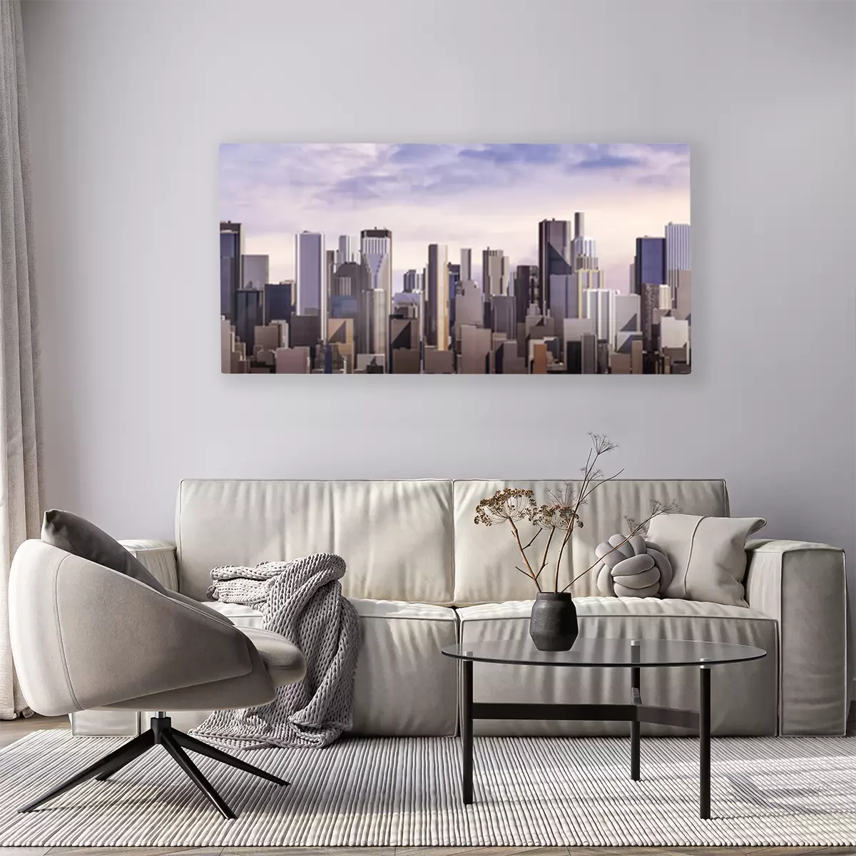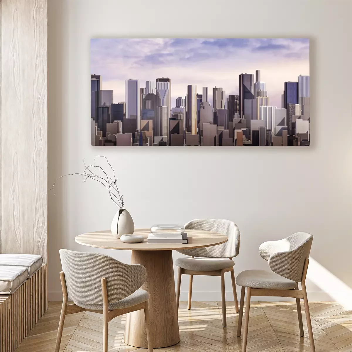 Canvas: Day city panorama / 3D render of daytime modern city under bright sky