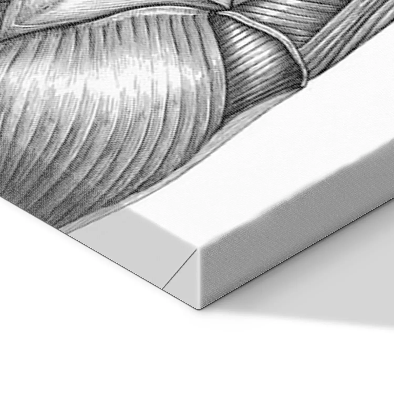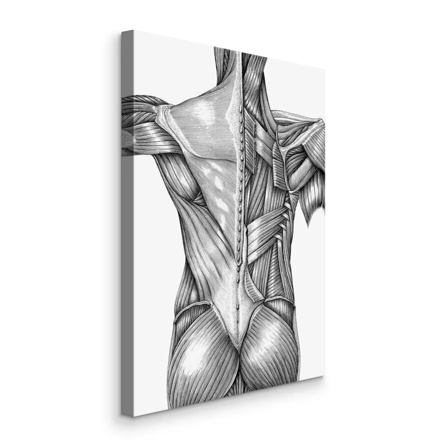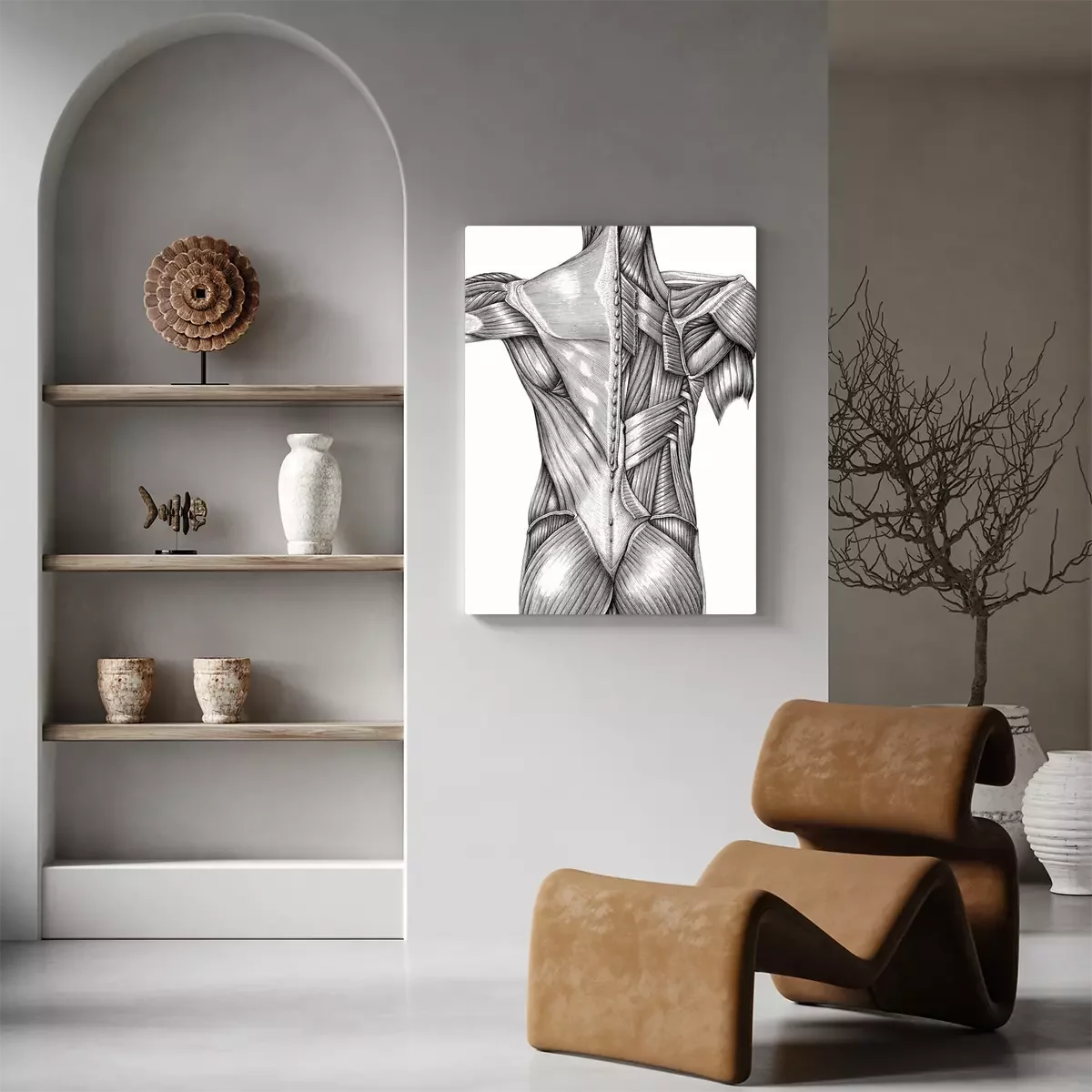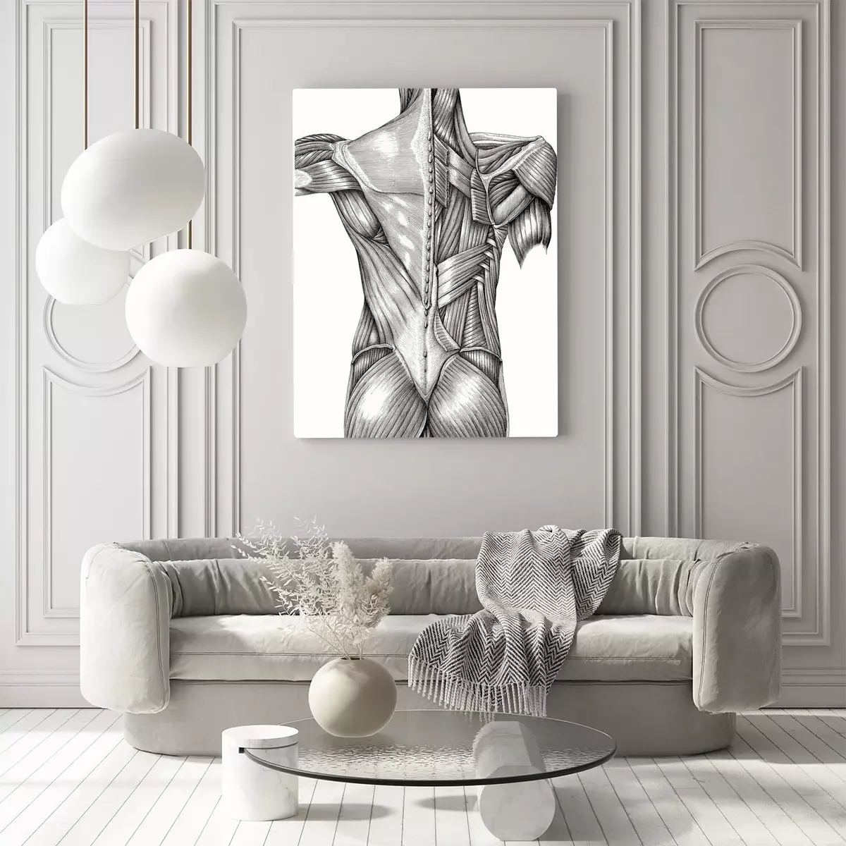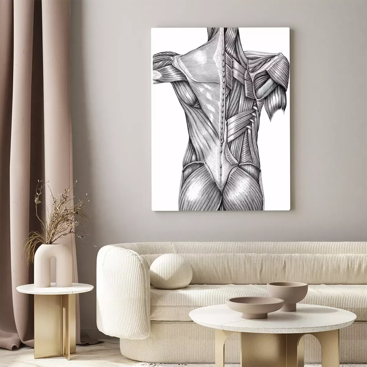 Canvas De anatomie van oppervlakkige spieren steunt uitstekende zwart-witte illustratie op witte achtergrond wordt geïsoleerd die