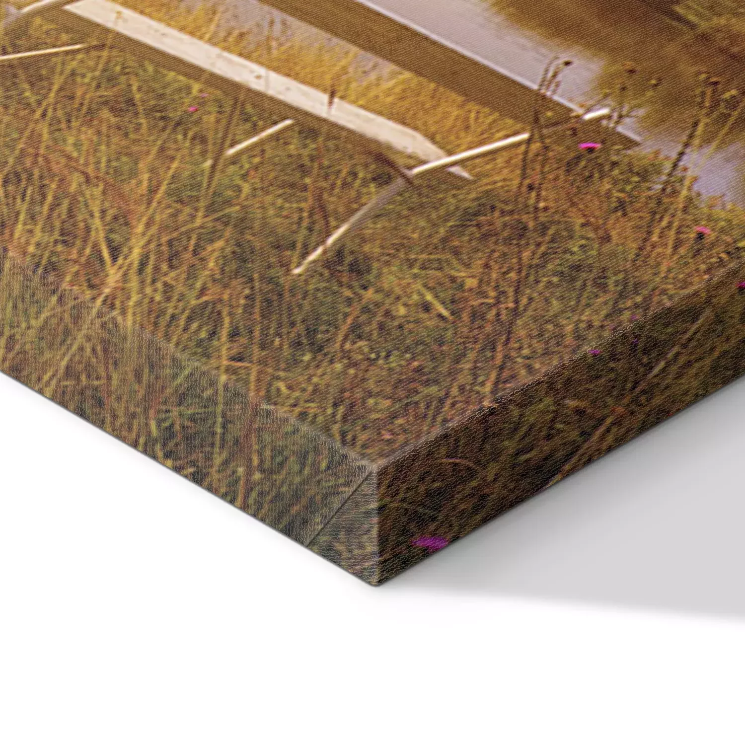 De print wordt aangebracht op hoogwaardig canvas dat op een schildersweefgetouw (spieraam) wordt gespannen. Omdat de print de zijranden bedekt, hoeft het ontwerp niet met een extra kader te worden omlijst. Wij raden ook composities aan die uit meerdere foto's bestaan en zo een coherente compositie vormen.