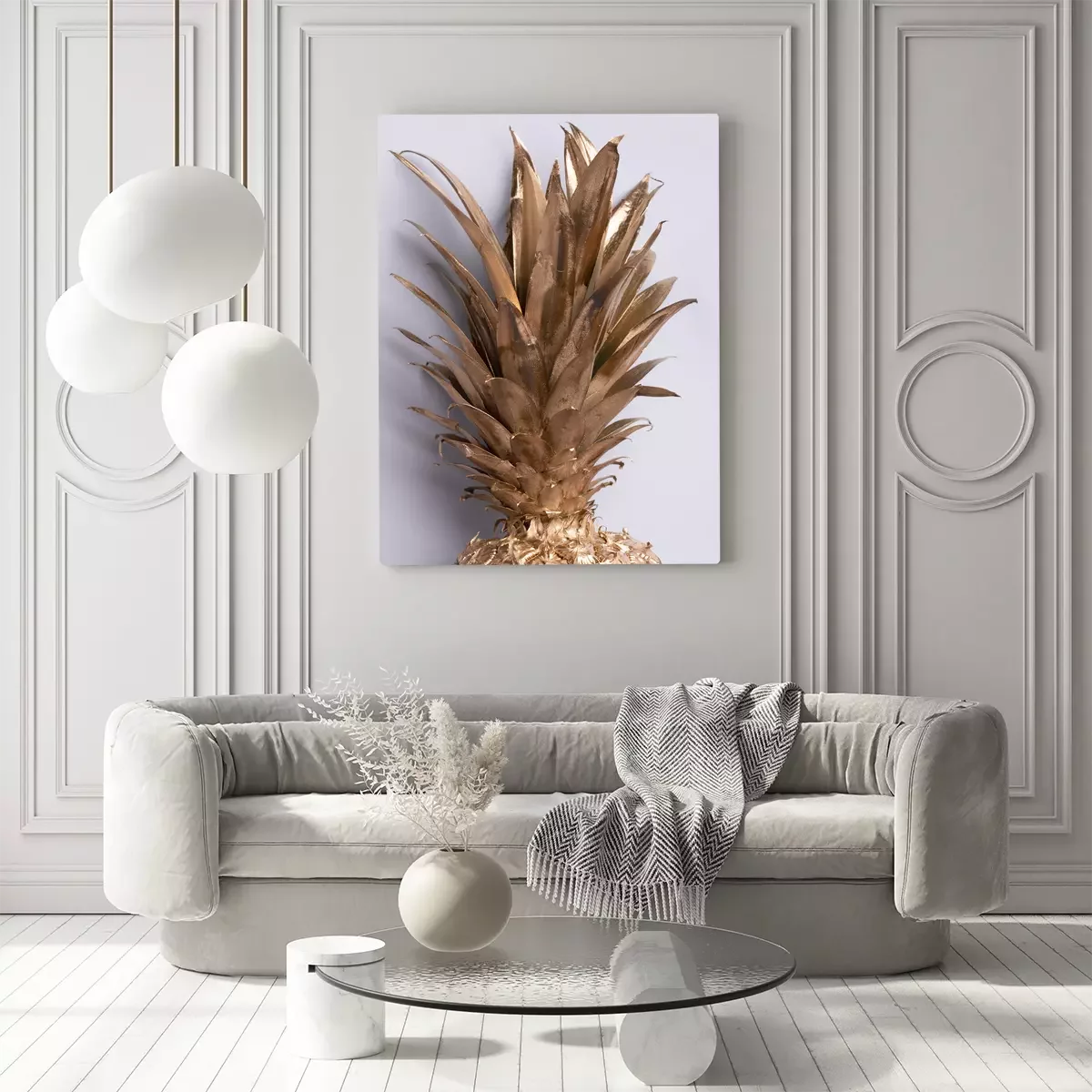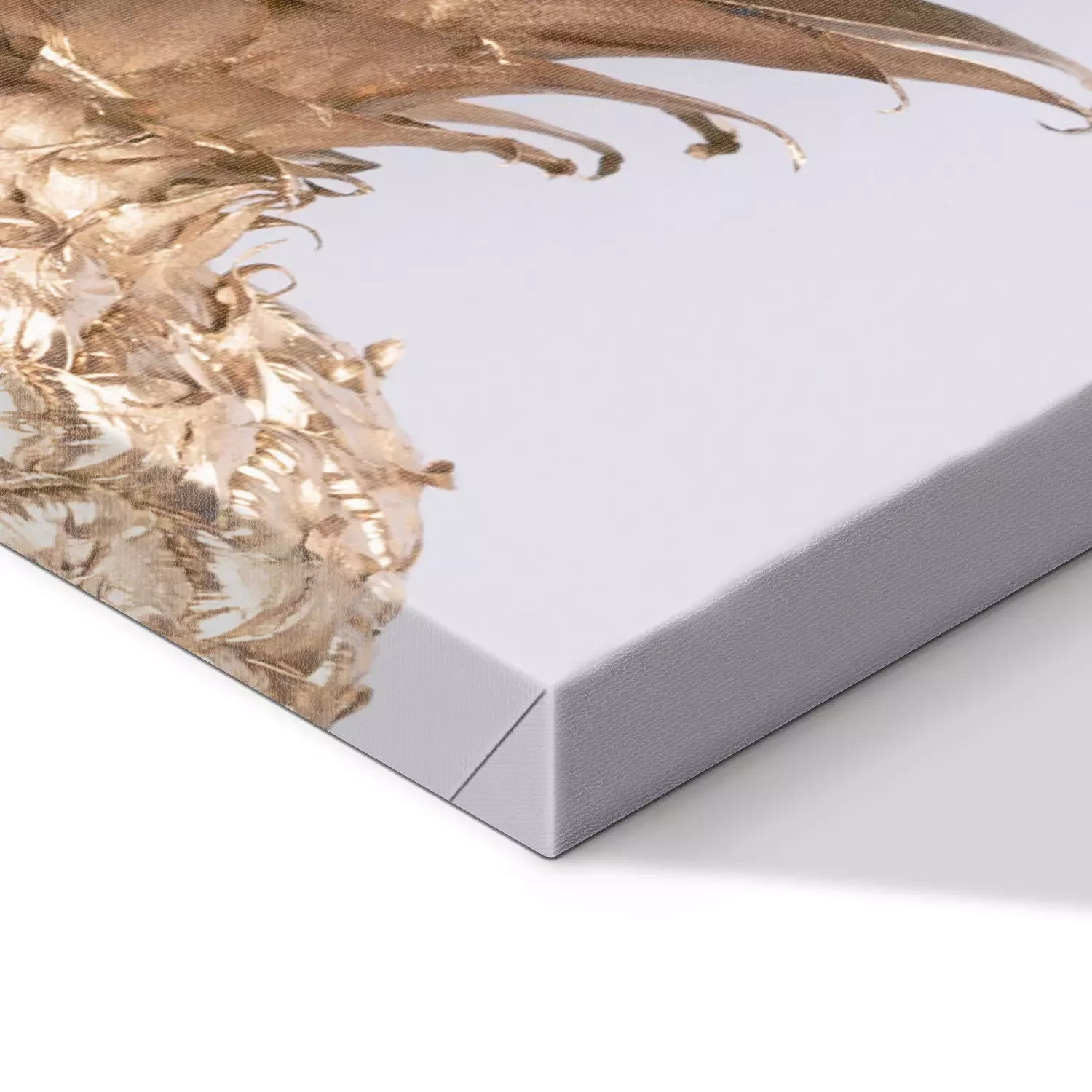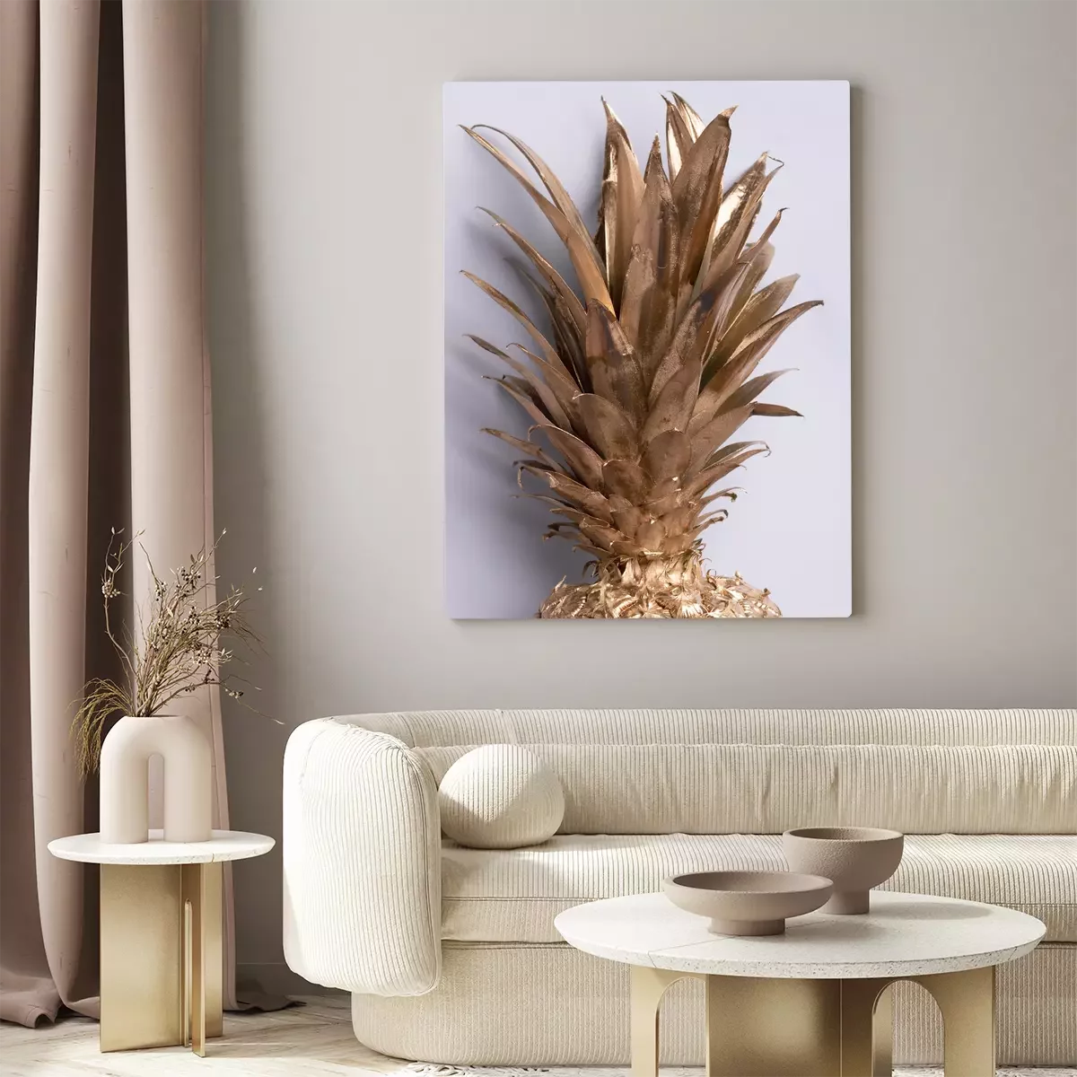 De bovenkant van een gouden ananas op een lichte achtergrond