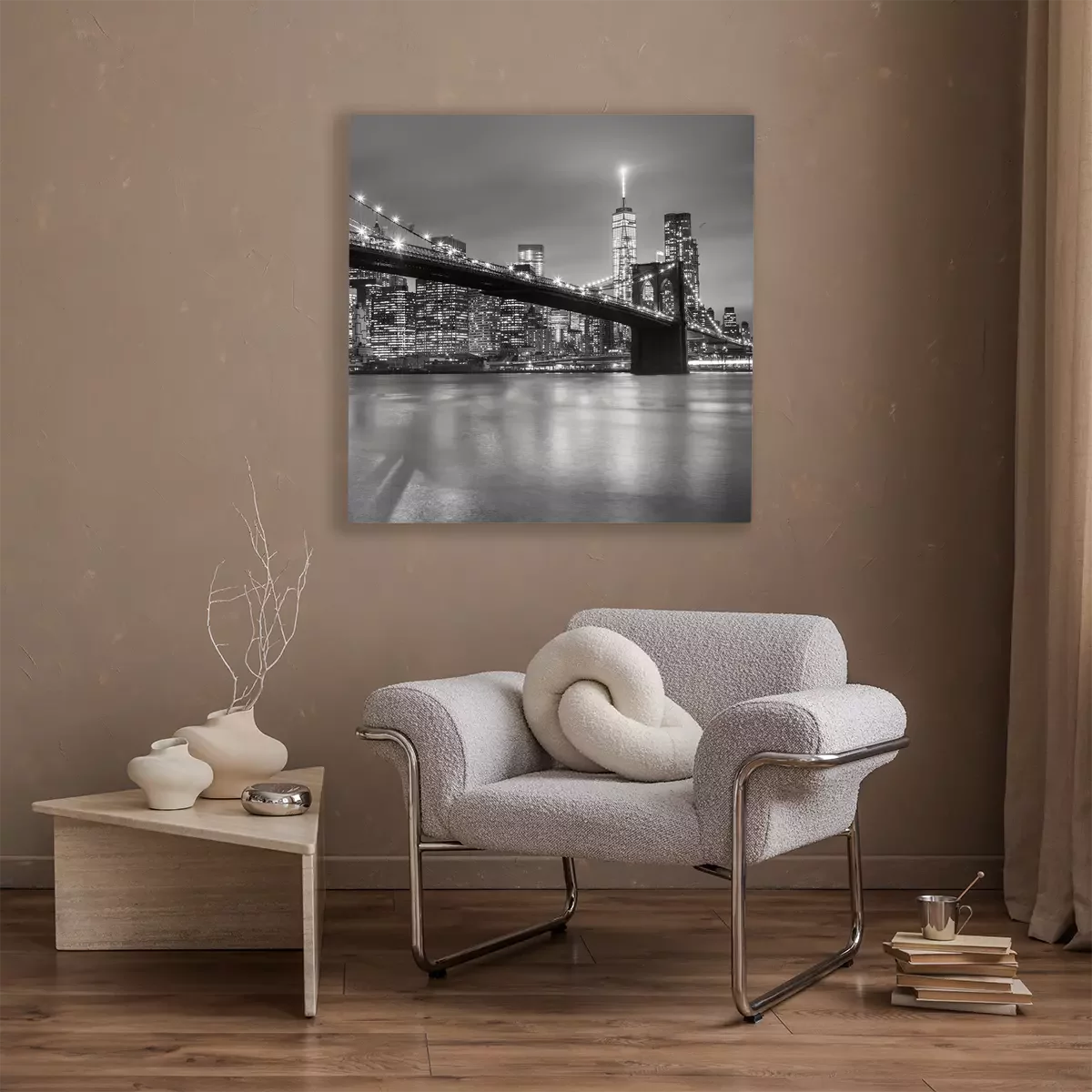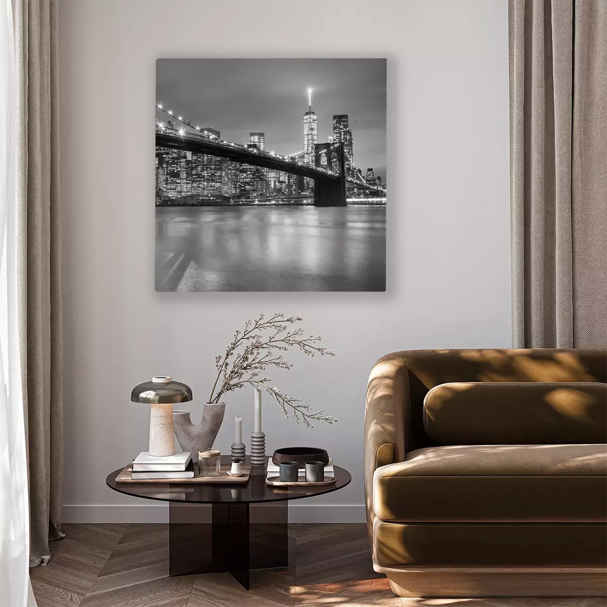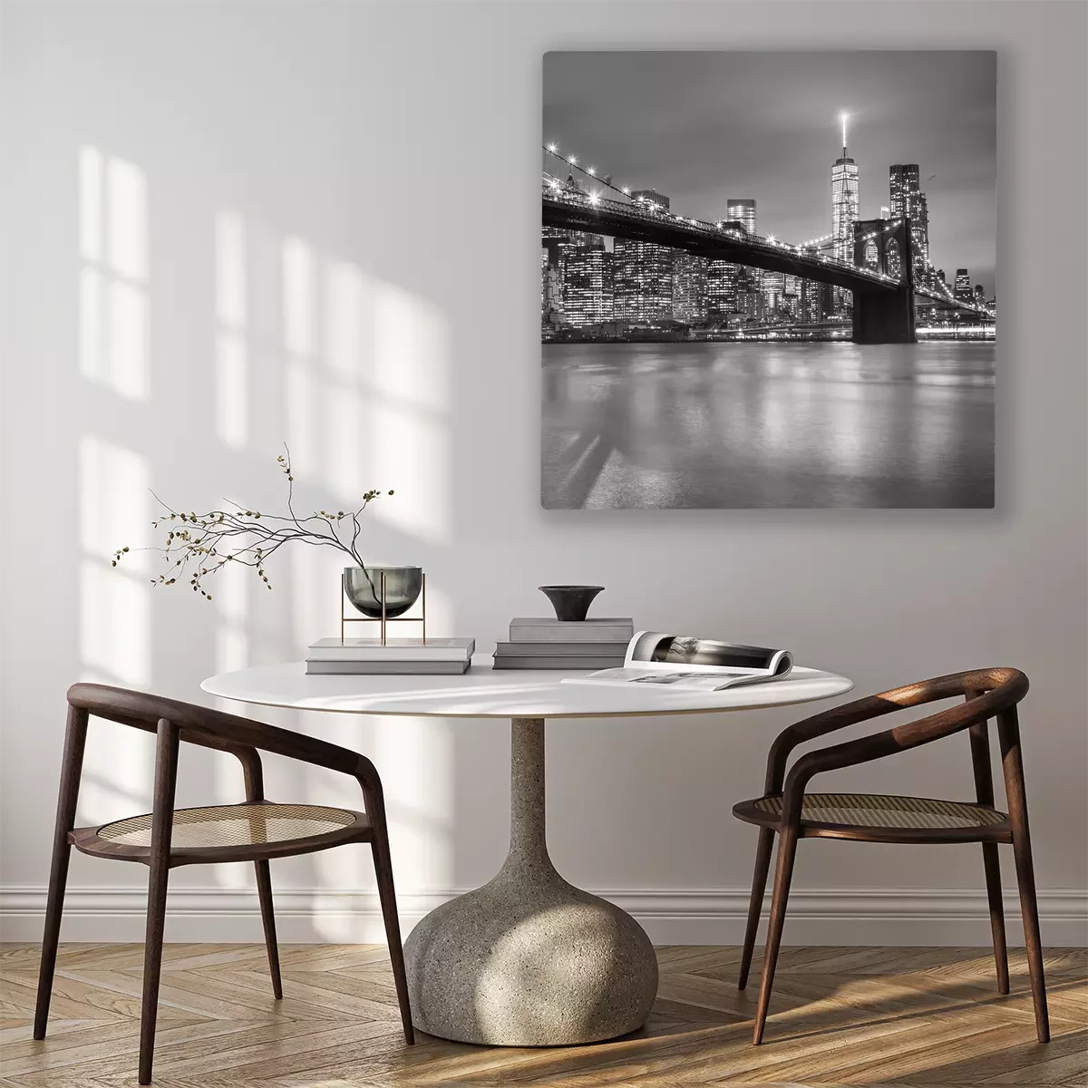 Canvas: De brug van Brooklyn in de schemering, New York City.