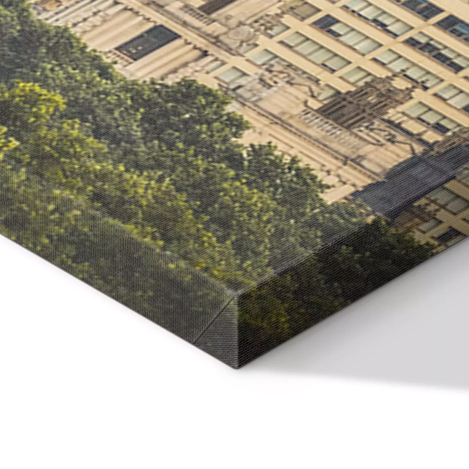 De print wordt aangebracht op hoogwaardig canvas dat op een schildersweefgetouw (spieraam) wordt gespannen. Omdat de print de zijranden bedekt, hoeft het ontwerp niet met een extra kader te worden omlijst. Wij raden ook composities aan die uit meerdere foto's bestaan en zo een coherente compositie vormen.