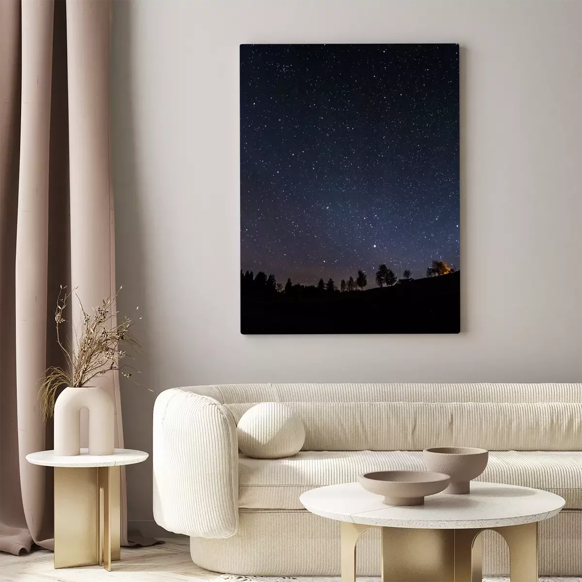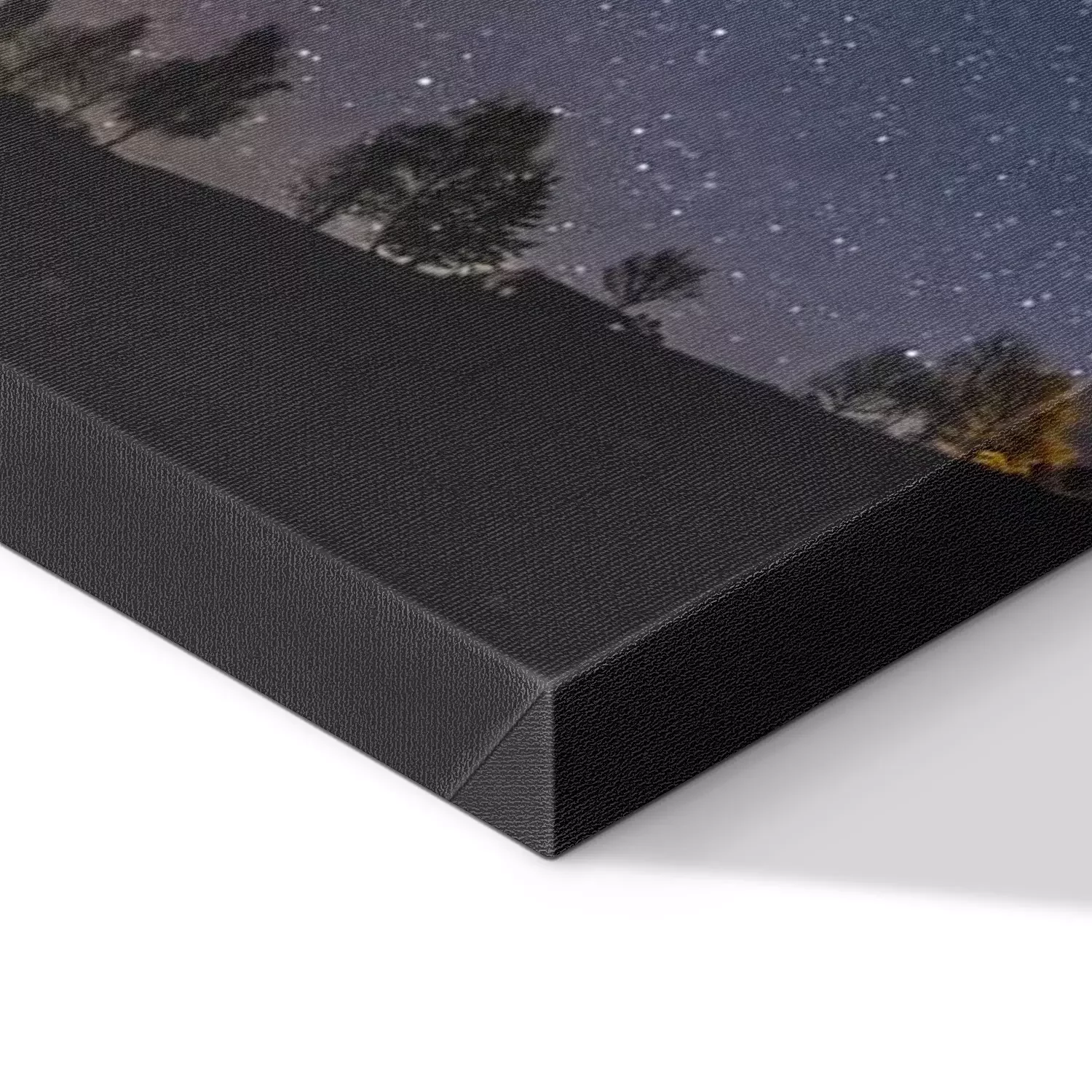 De print wordt aangebracht op hoogwaardig canvas dat op een schildersweefgetouw (spieraam) wordt gespannen. Omdat de print de zijranden bedekt, hoeft het ontwerp niet met een extra kader te worden omlijst. Wij raden ook composities aan die uit meerdere foto's bestaan en zo een coherente compositie vormen.