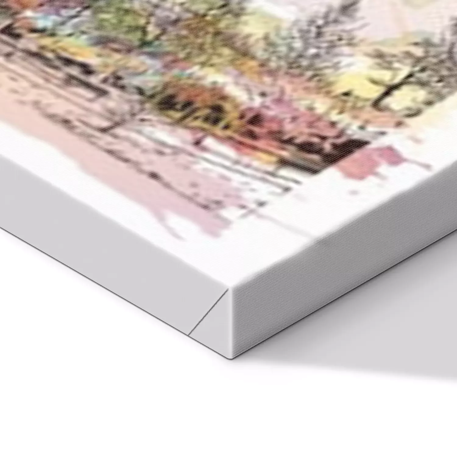 De print wordt aangebracht op hoogwaardig canvas dat op een schildersweefgetouw (spieraam) wordt gespannen. Omdat de print de zijranden bedekt, hoeft het ontwerp niet met een extra kader te worden omlijst. Wij raden ook composities aan die uit meerdere foto's bestaan en zo een coherente compositie vormen.