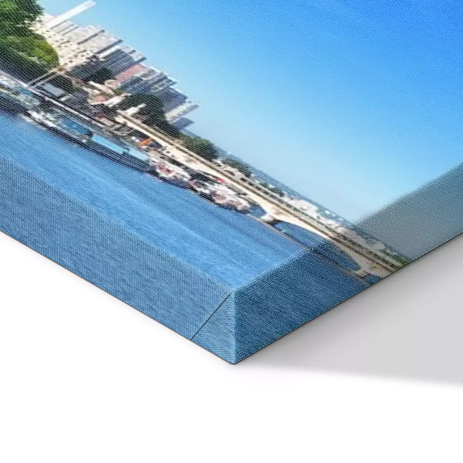 De print wordt aangebracht op hoogwaardig canvas dat op een schildersweefgetouw (spieraam) wordt gespannen. Omdat de print de zijranden bedekt, hoeft het ontwerp niet met een extra kader te worden omlijst. Wij raden ook composities aan die uit meerdere foto's bestaan en zo een coherente compositie vormen.