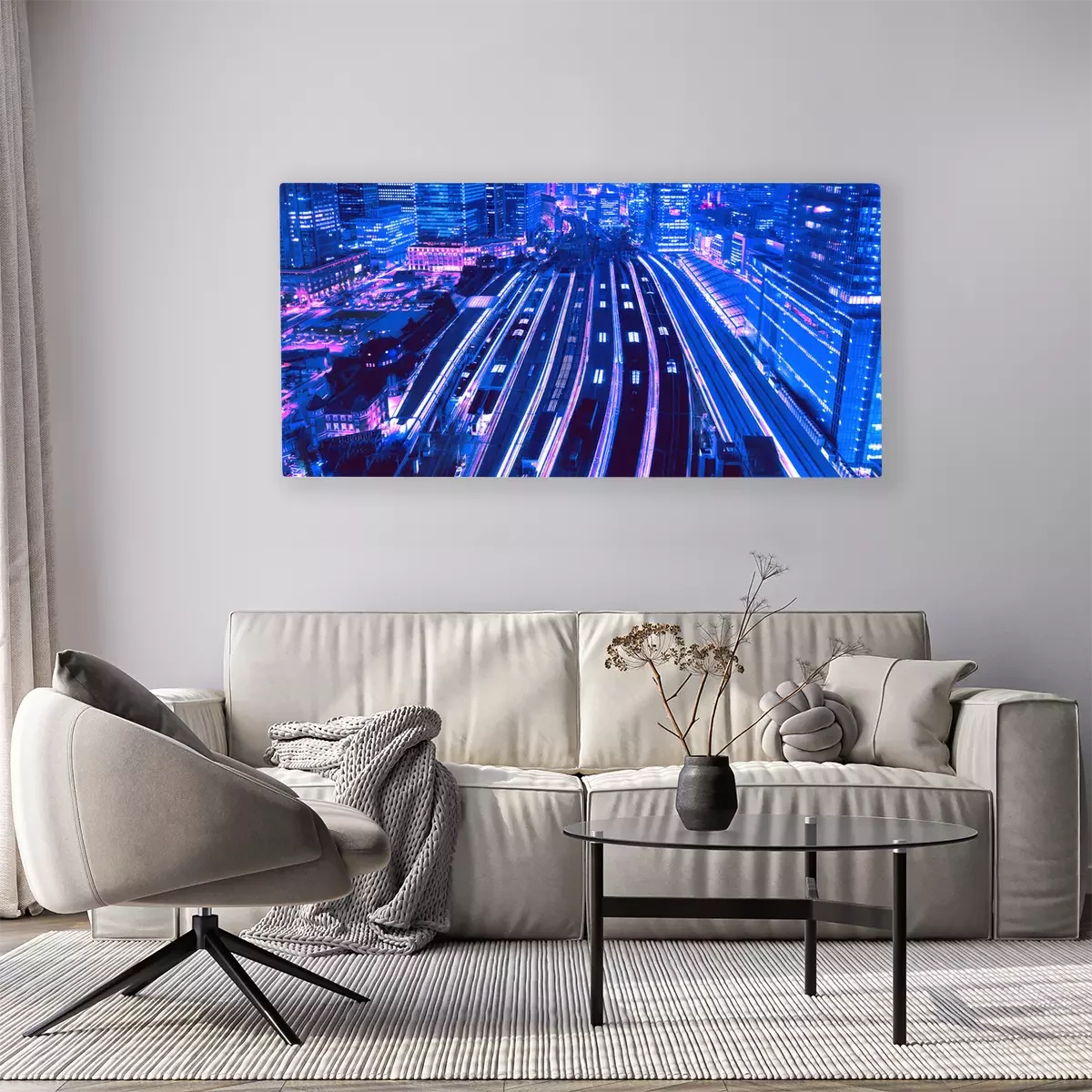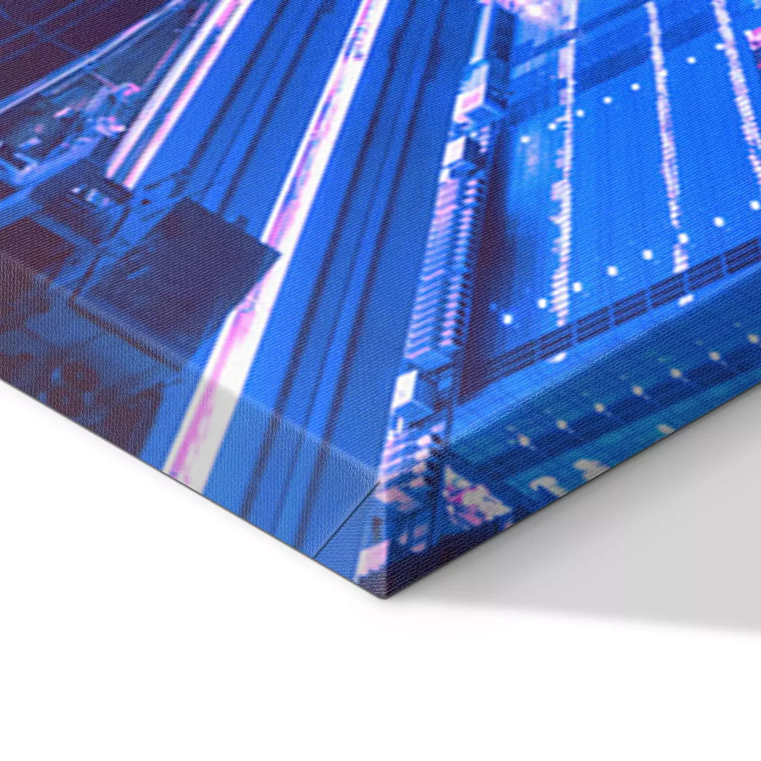 De print wordt aangebracht op hoogwaardig canvas dat op een schildersweefgetouw (spieraam) wordt gespannen. Omdat de print de zijranden bedekt, hoeft het ontwerp niet met een extra kader te worden omlijst. Wij raden ook composities aan die uit meerdere foto's bestaan en zo een coherente compositie vormen.