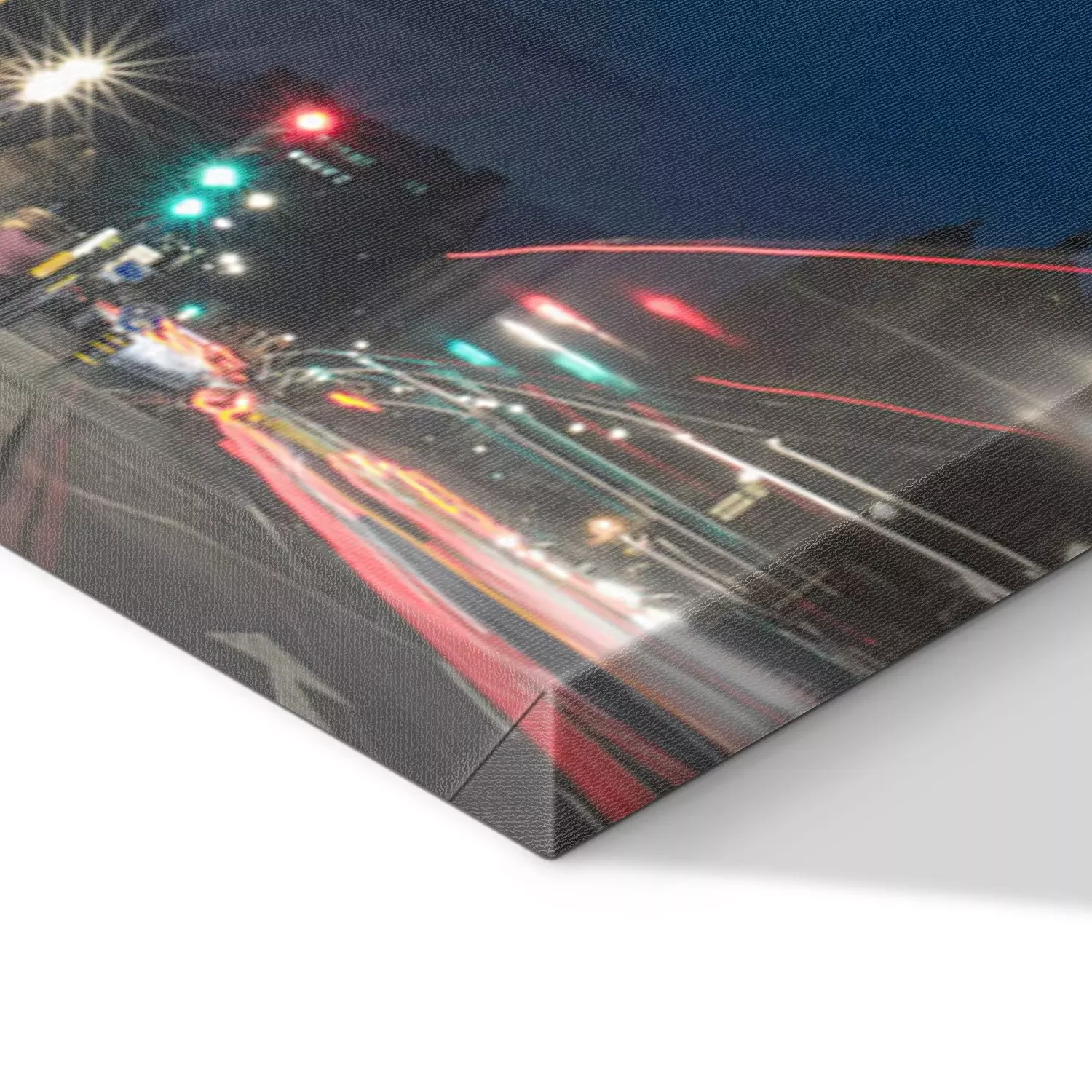 De print wordt aangebracht op hoogwaardig canvas dat op een schildersweefgetouw (spieraam) wordt gespannen. Omdat de print de zijranden bedekt, hoeft het ontwerp niet met een extra kader te worden omlijst. Wij raden ook composities aan die uit meerdere foto's bestaan en zo een coherente compositie vormen.