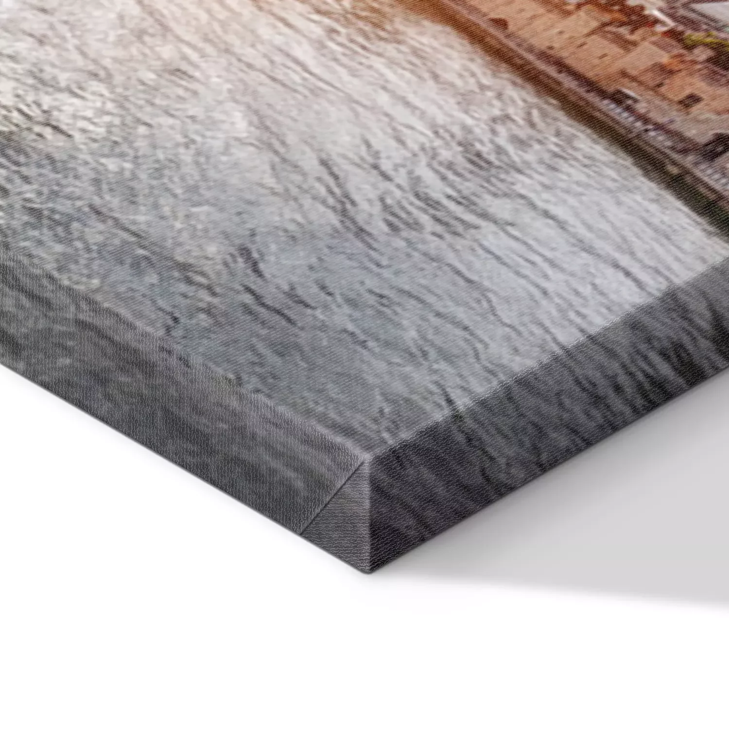 De print wordt aangebracht op hoogwaardig canvas dat op een schildersweefgetouw (spieraam) wordt gespannen. Omdat de print de zijranden bedekt, hoeft het ontwerp niet met een extra kader te worden omlijst. Wij raden ook composities aan die uit meerdere foto's bestaan en zo een coherente compositie vormen.