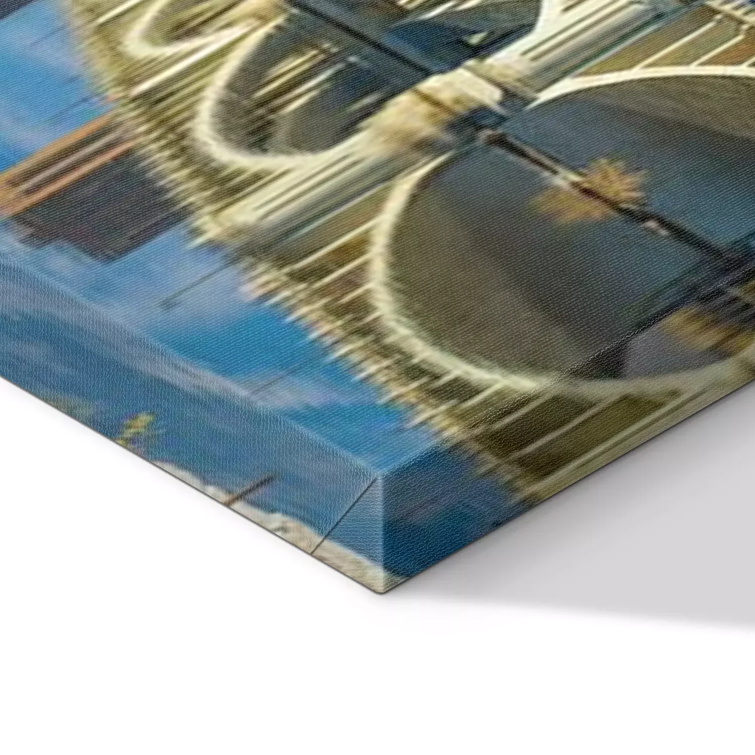 De print wordt aangebracht op hoogwaardig canvas dat op een schildersweefgetouw (spieraam) wordt gespannen. Omdat de print de zijranden bedekt, hoeft het ontwerp niet met een extra kader te worden omlijst. Wij raden ook composities aan die uit meerdere foto's bestaan en zo een coherente compositie vormen.