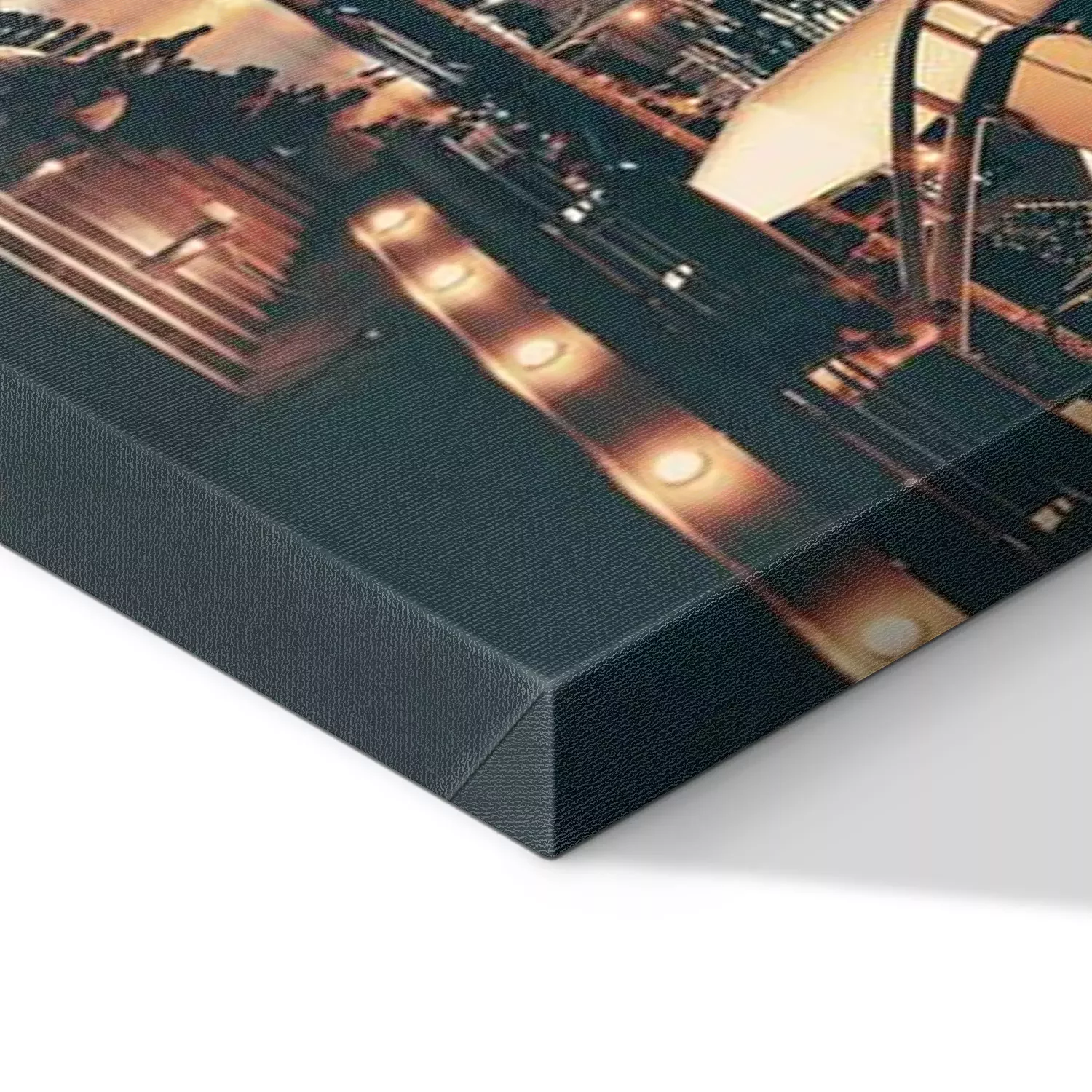 De print wordt aangebracht op hoogwaardig canvas dat op een schildersweefgetouw (spieraam) wordt gespannen. Omdat de print de zijranden bedekt, hoeft het ontwerp niet met een extra kader te worden omlijst. Wij raden ook composities aan die uit meerdere foto's bestaan en zo een coherente compositie vormen.