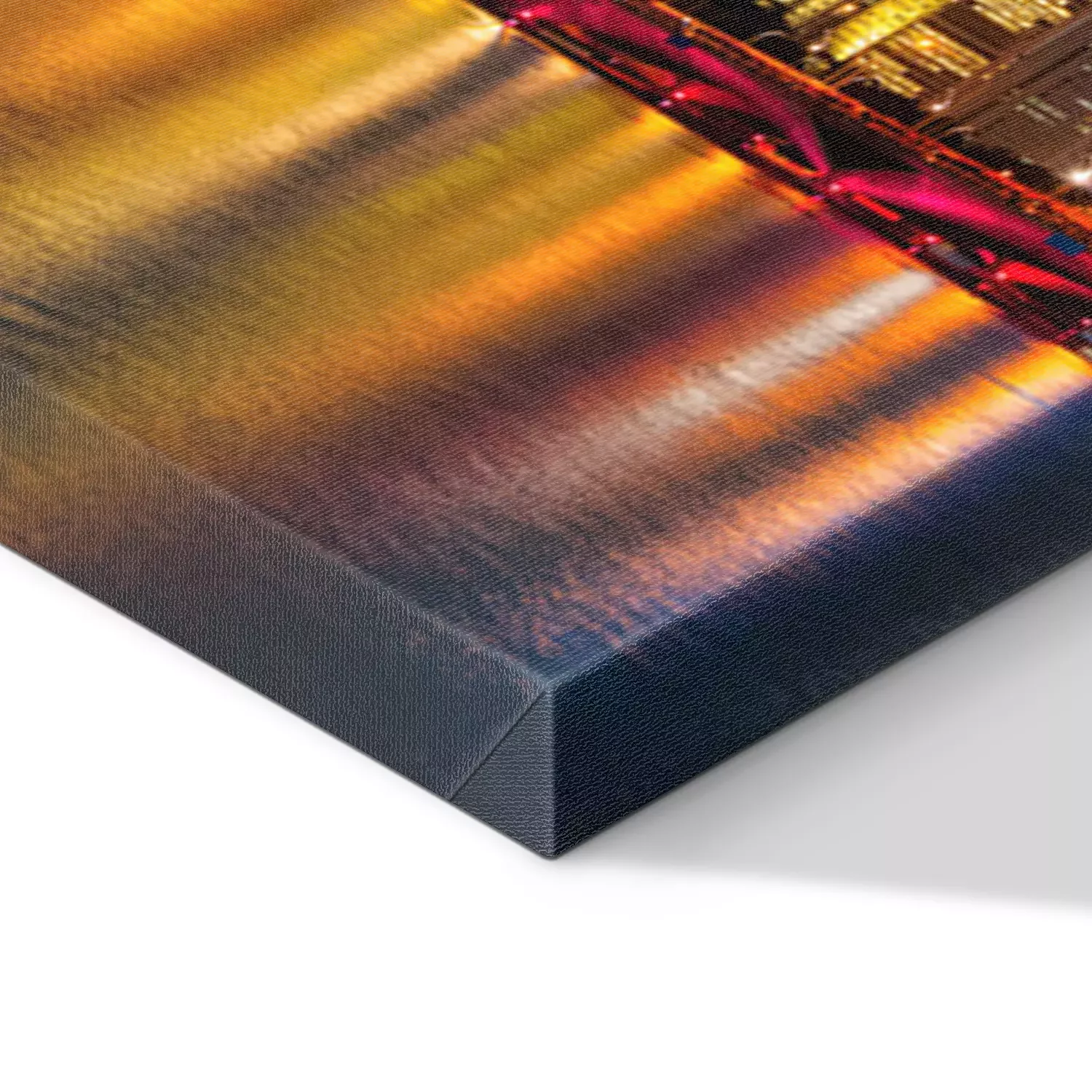 De print wordt aangebracht op hoogwaardig canvas dat op een schildersweefgetouw (spieraam) wordt gespannen. Omdat de print de zijranden bedekt, hoeft het ontwerp niet met een extra kader te worden omlijst. Wij raden ook composities aan die uit meerdere foto's bestaan en zo een coherente compositie vormen.