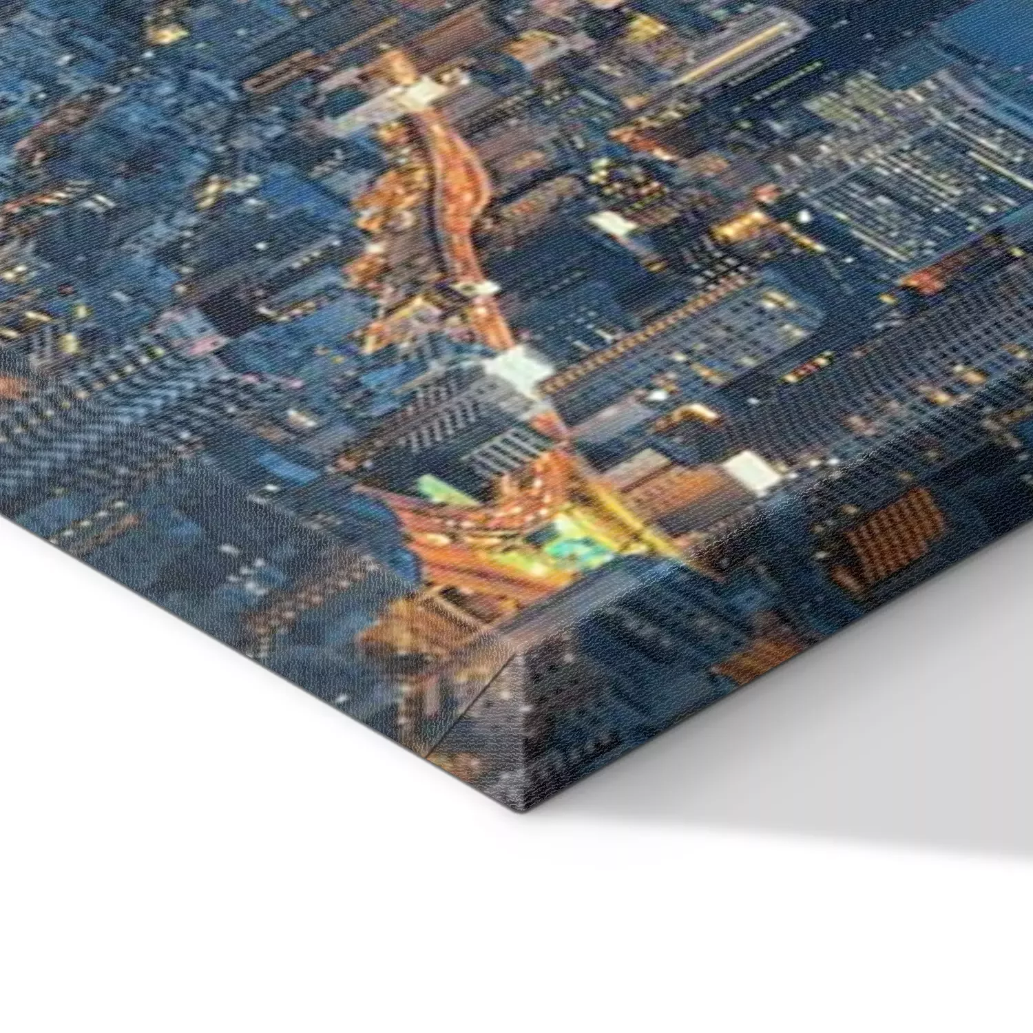 De print wordt aangebracht op hoogwaardig canvas dat op een schildersweefgetouw (spieraam) wordt gespannen. Omdat de print de zijranden bedekt, hoeft het ontwerp niet met een extra kader te worden omlijst. Wij raden ook composities aan die uit meerdere foto's bestaan en zo een coherente compositie vormen.