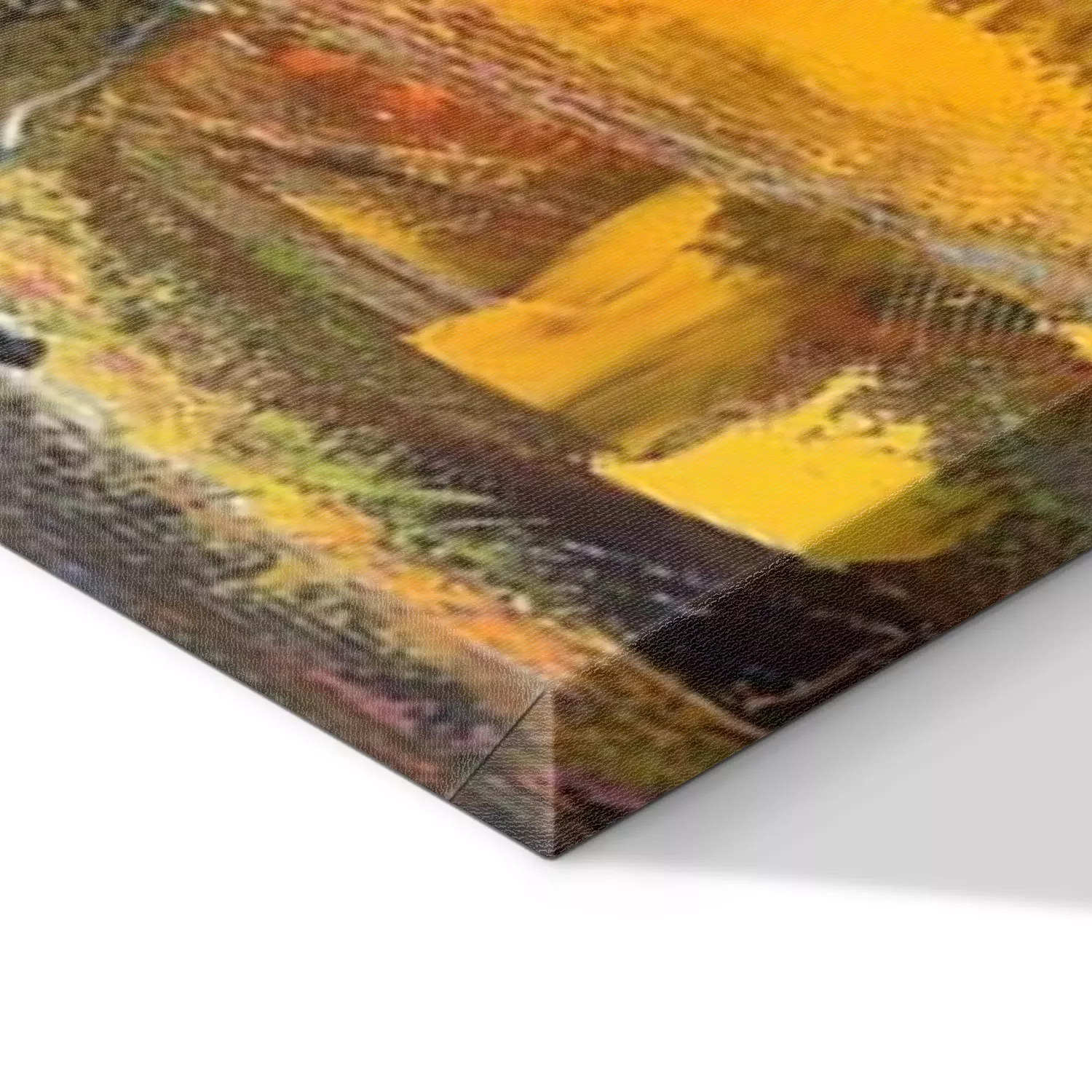 De print wordt aangebracht op hoogwaardig canvas dat op een schildersweefgetouw (spieraam) wordt gespannen. Omdat de print de zijranden bedekt, hoeft het ontwerp niet met een extra kader te worden omlijst. Wij raden ook composities aan die uit meerdere foto's bestaan en zo een coherente compositie vormen.
