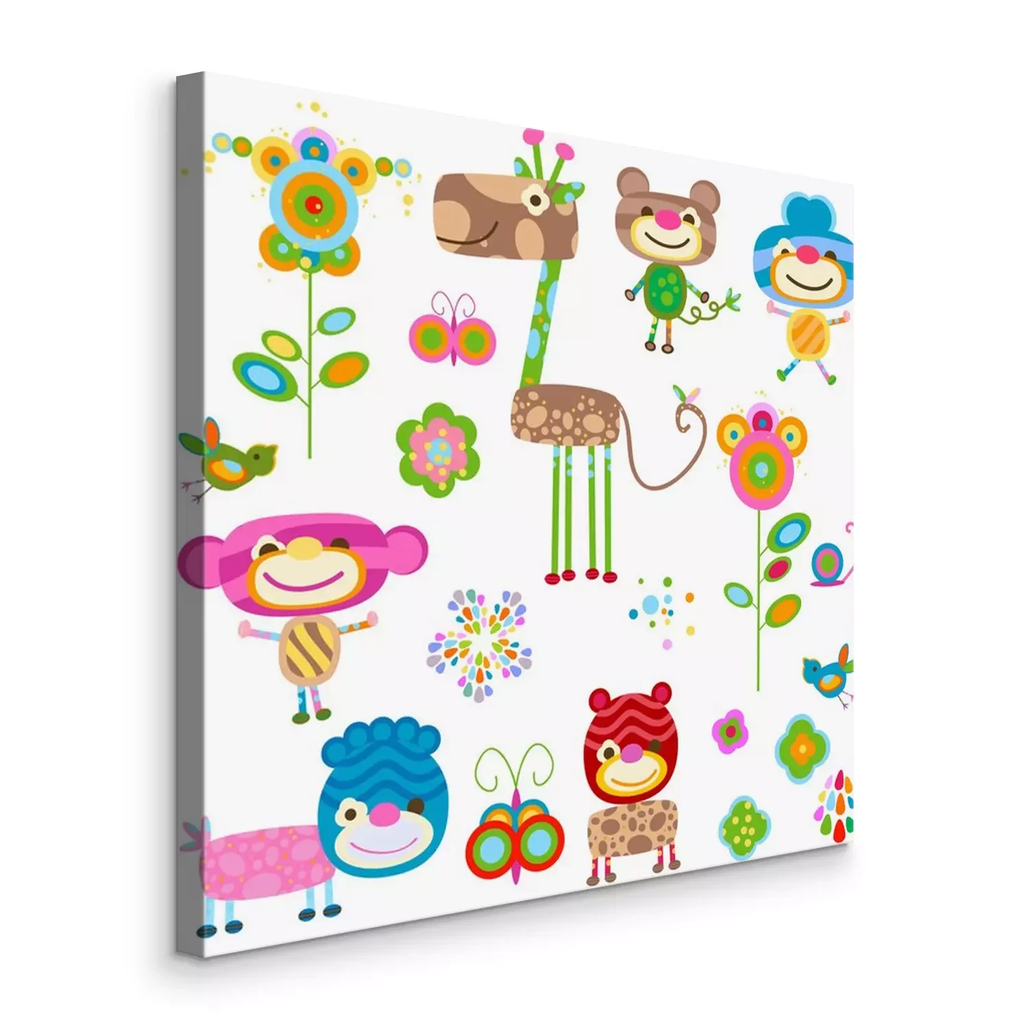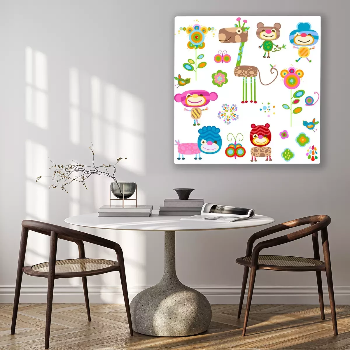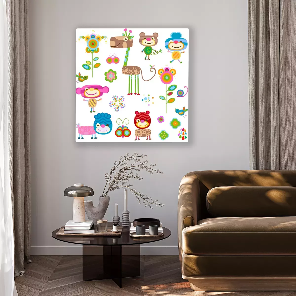 Decoratieve gekleurde tekeningen van dieren en wolken