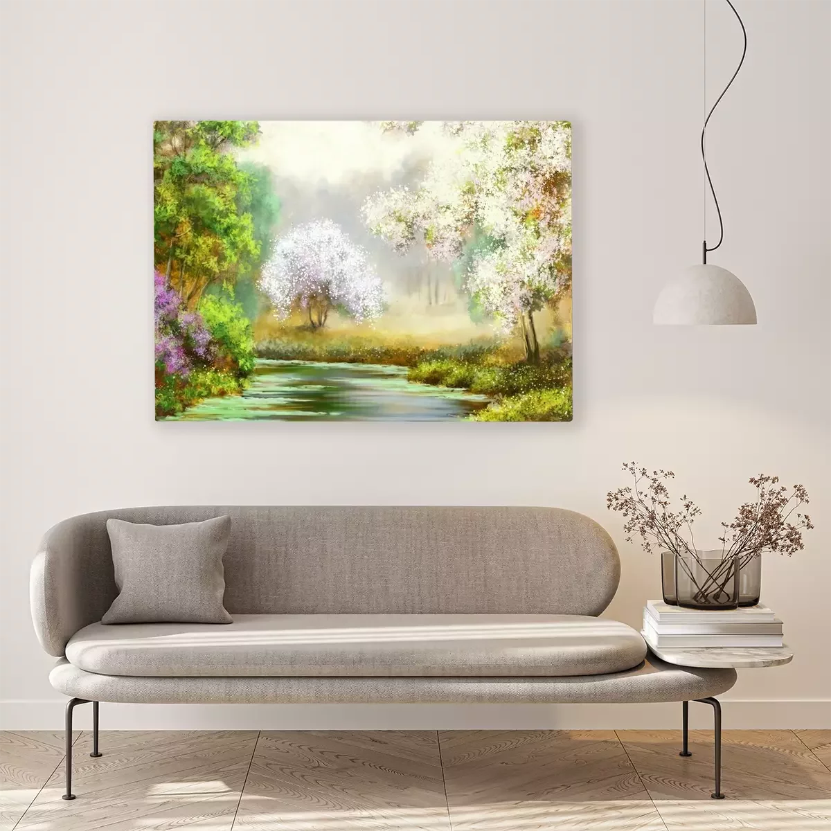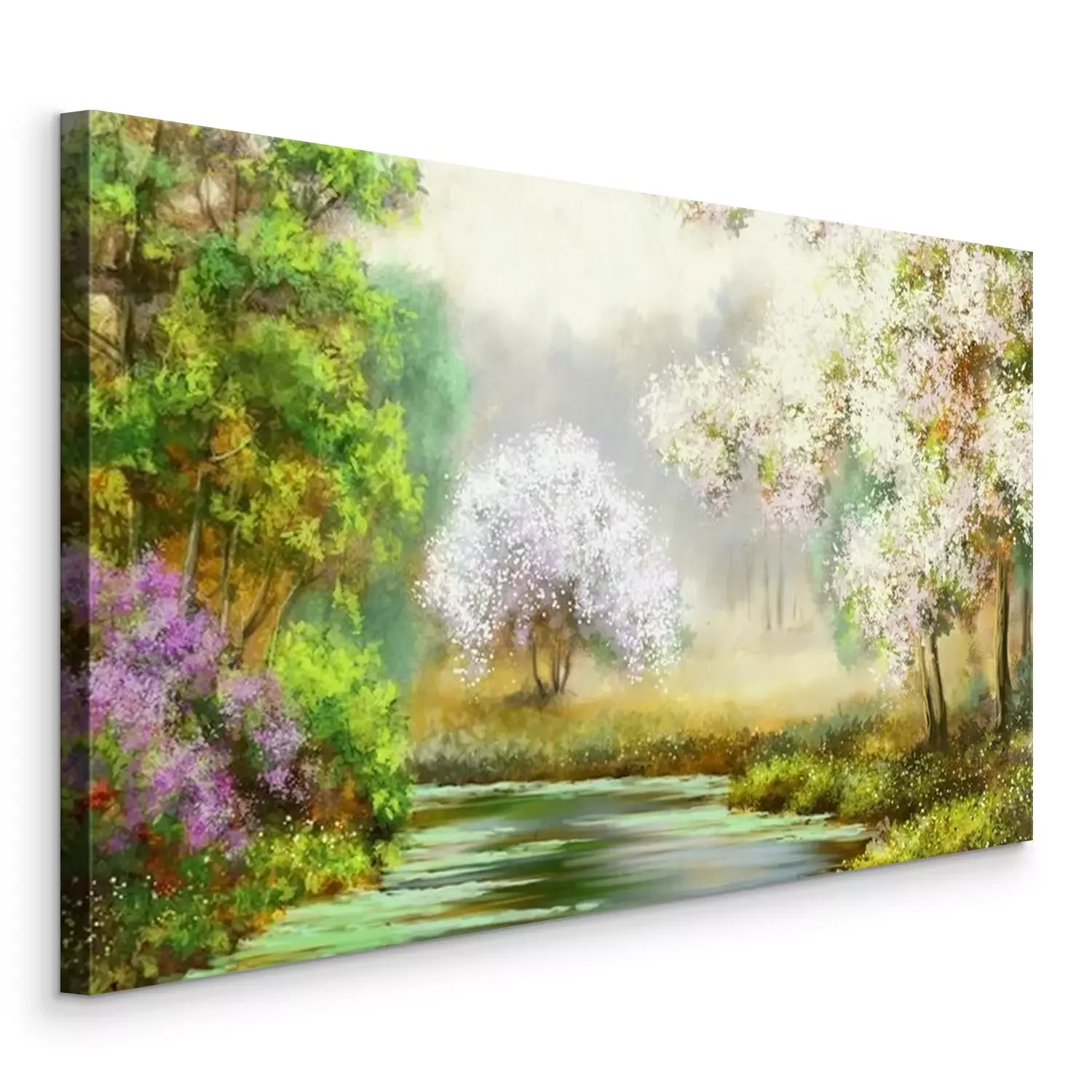 Canvas: De lente, boom, rivier, schilderijen landschap