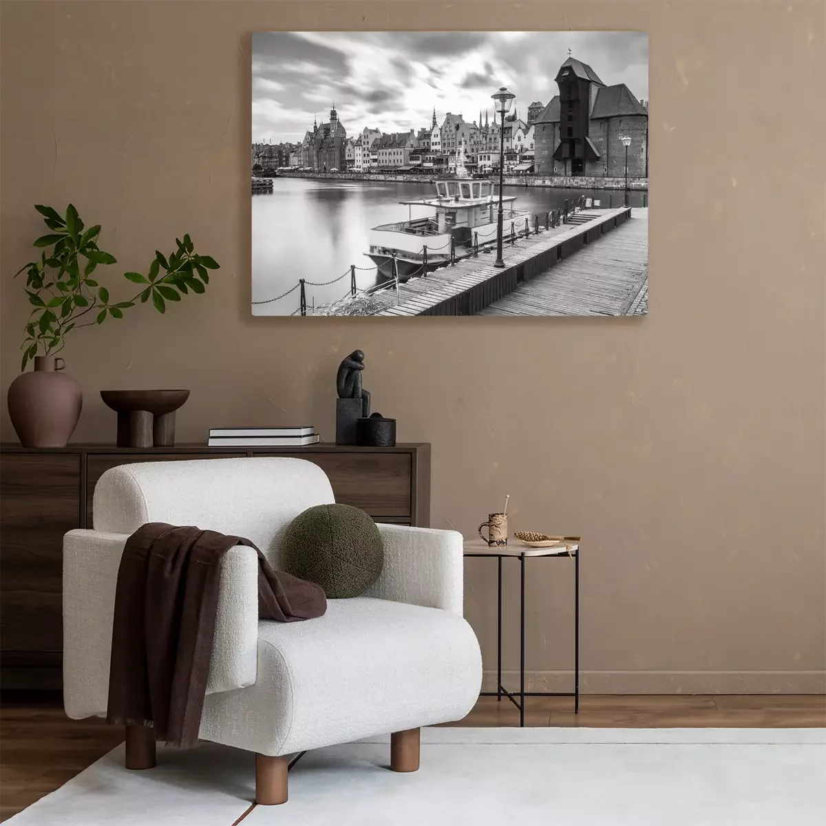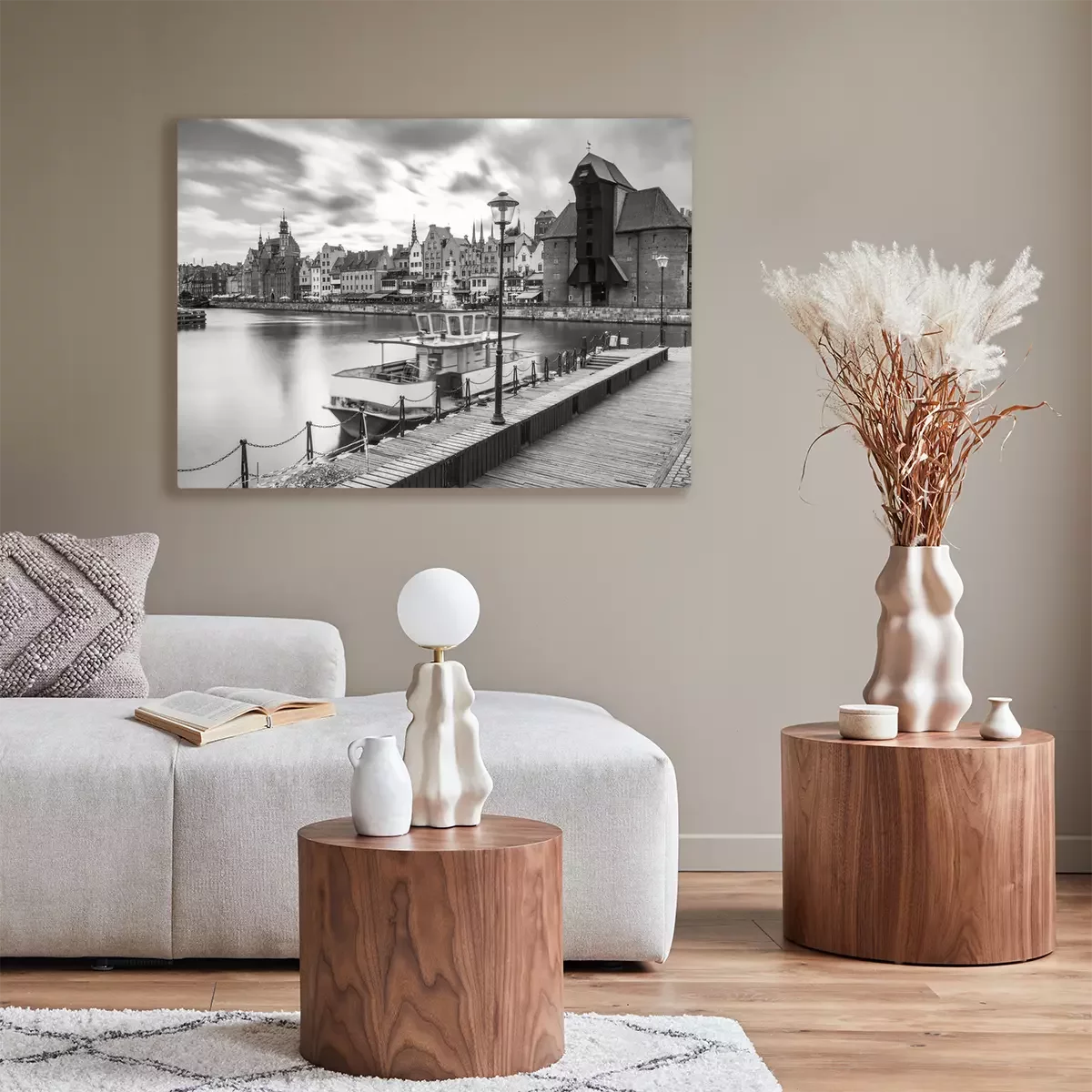 Canvas: De middeleeuwse haven kraan over Motlawa rivier in Gdansk, Polen