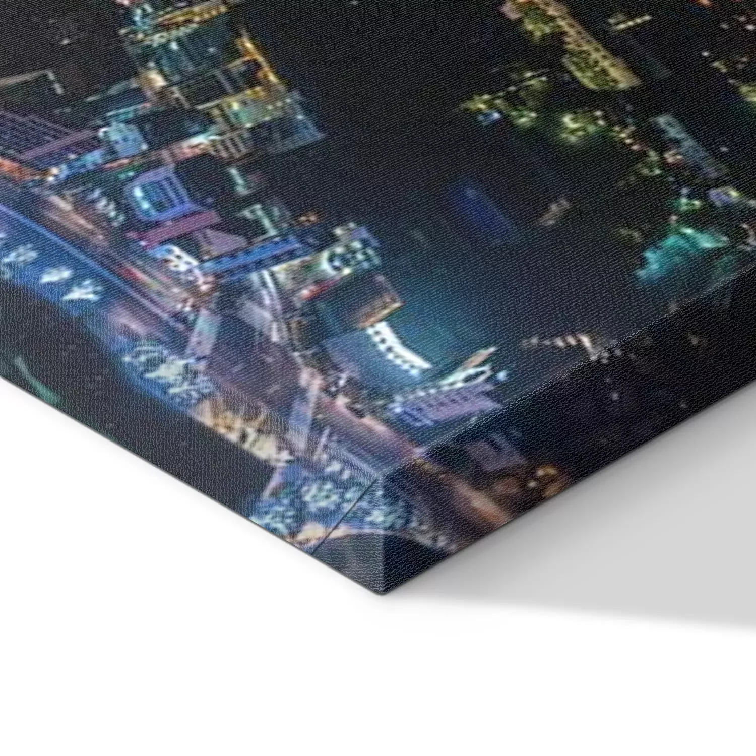 De print wordt aangebracht op hoogwaardig canvas dat op een schildersweefgetouw (spieraam) wordt gespannen. Omdat de print de zijranden bedekt, hoeft het ontwerp niet met een extra kader te worden omlijst. Wij raden ook composities aan die uit meerdere foto's bestaan en zo een coherente compositie vormen.