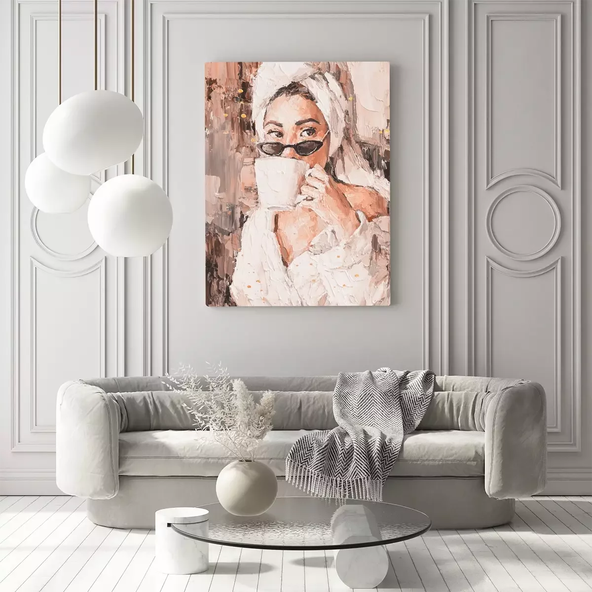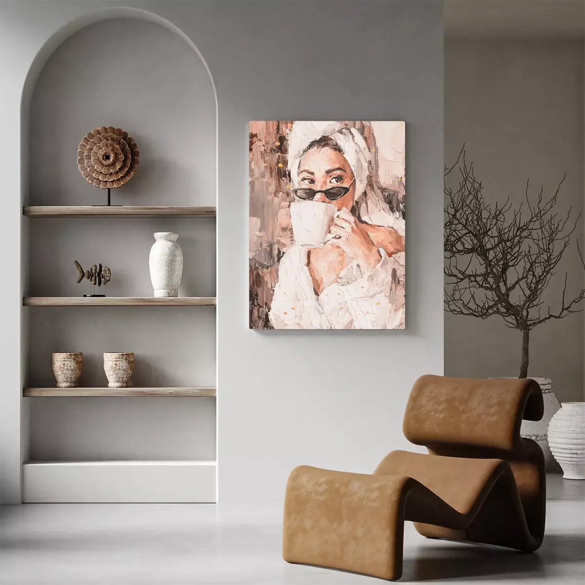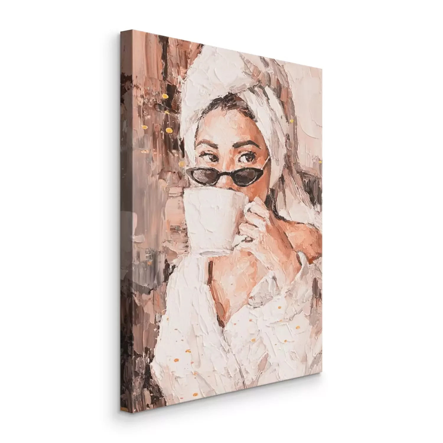 Canvas: De ochtendmomenten van een vrouw na een bad met koffie