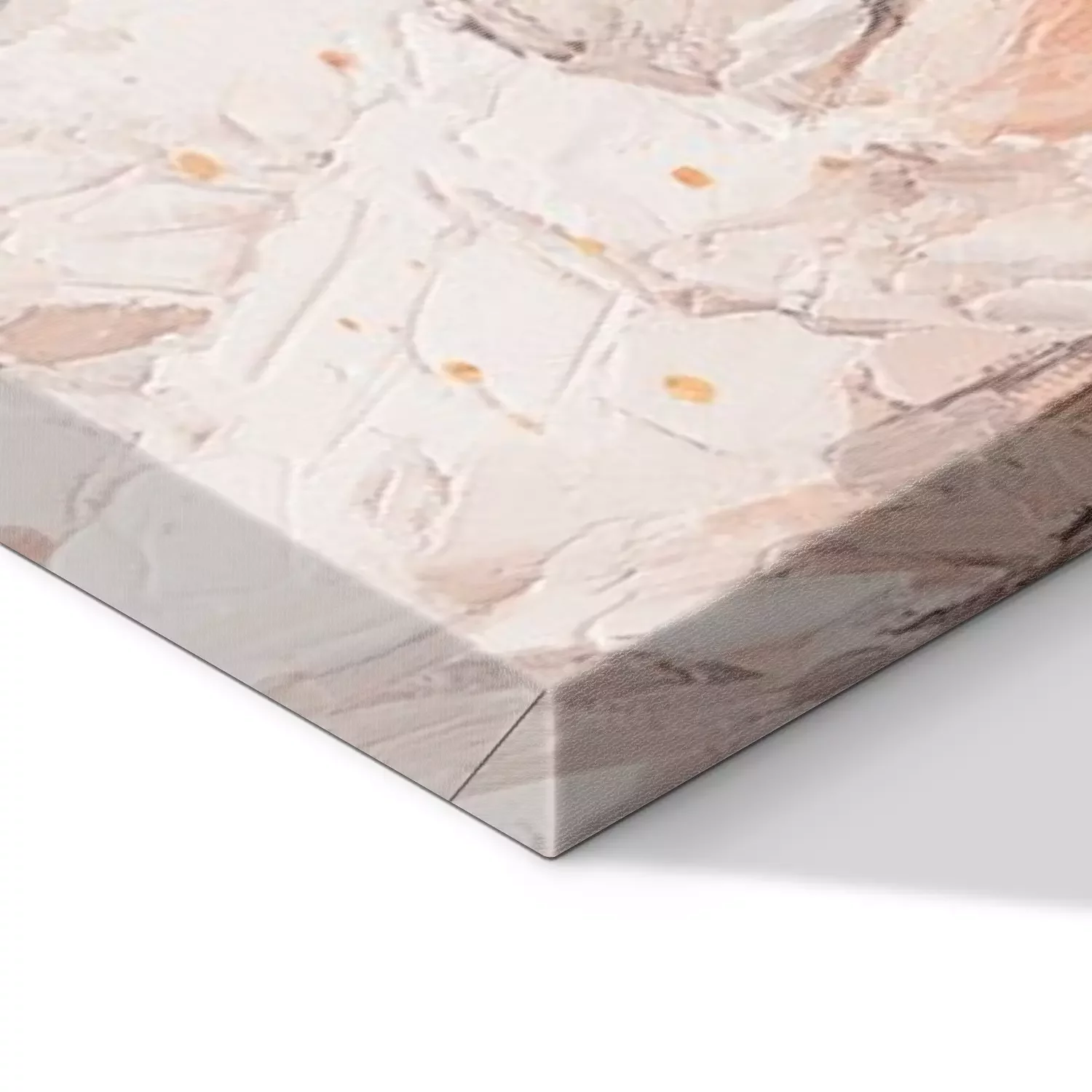 De print wordt aangebracht op hoogwaardig canvas dat op een schildersweefgetouw (spieraam) wordt gespannen. Omdat de print de zijranden bedekt, hoeft het ontwerp niet met een extra kader te worden omlijst. Wij raden ook composities aan die uit meerdere foto's bestaan en zo een coherente compositie vormen.
