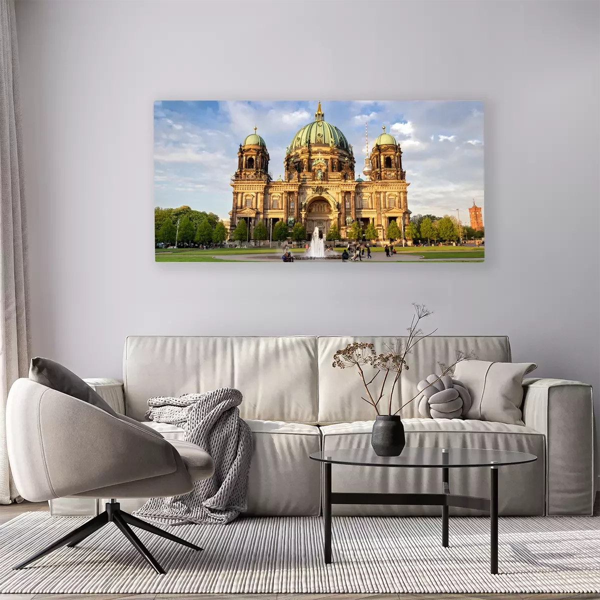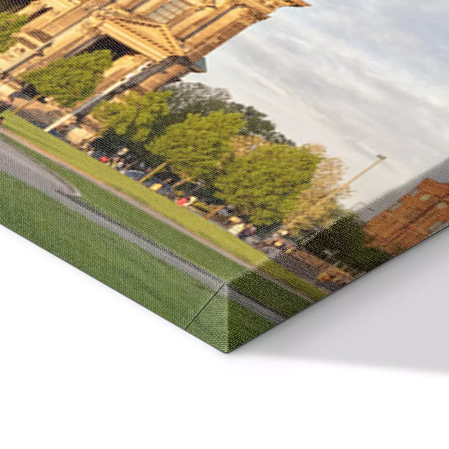 De print wordt aangebracht op hoogwaardig canvas dat op een schildersweefgetouw (spieraam) wordt gespannen. Omdat de print de zijranden bedekt, hoeft het ontwerp niet met een extra kader te worden omlijst. Wij raden ook composities aan die uit meerdere foto's bestaan en zo een coherente compositie vormen.