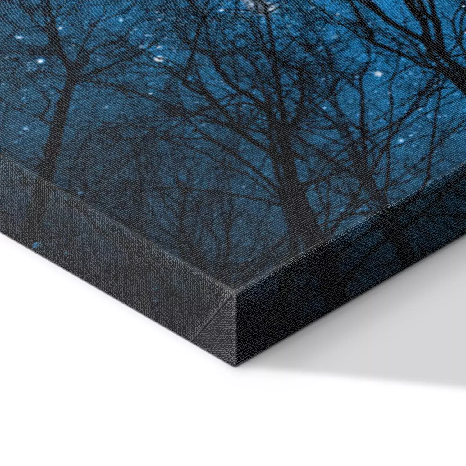 De print wordt aangebracht op hoogwaardig canvas dat op een schildersweefgetouw (spieraam) wordt gespannen. Omdat de print de zijranden bedekt, hoeft het ontwerp niet met een extra kader te worden omlijst. Wij raden ook composities aan die uit meerdere foto's bestaan en zo een coherente compositie vormen.